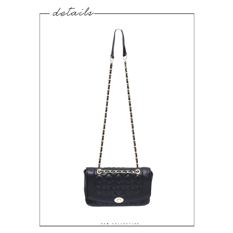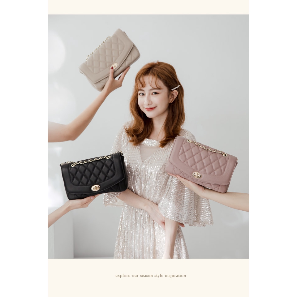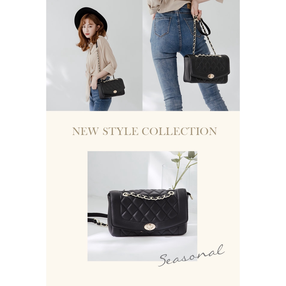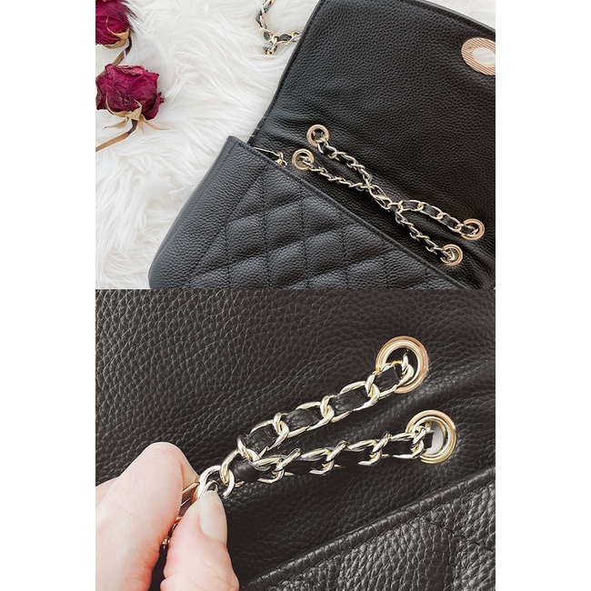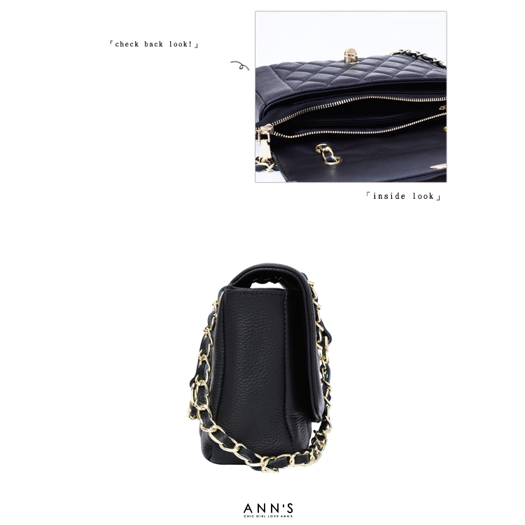 Ann’S優雅鍊帶真皮牛皮25經典黛妃包-黑