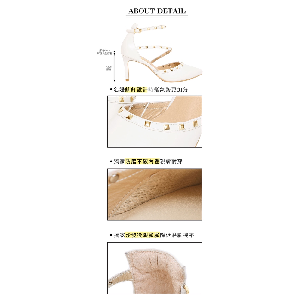 Ann’S頂級小羊皮性感斜帶鉚釘尖頭細高跟鞋7.5cm-白