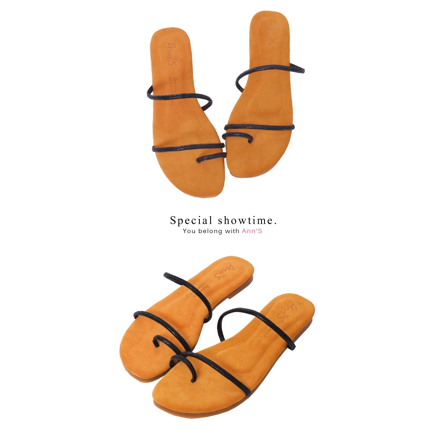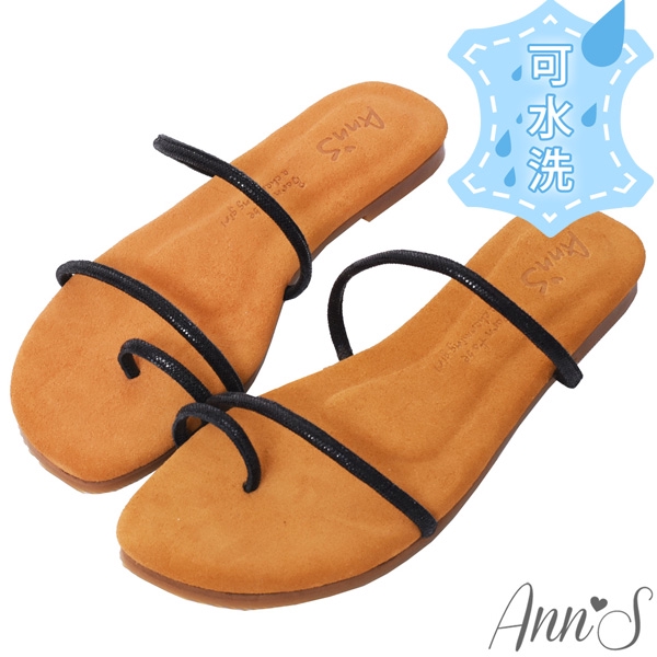 Ann’S水洗牛皮-套指軟軟小羊皮平底涼拖鞋-黑