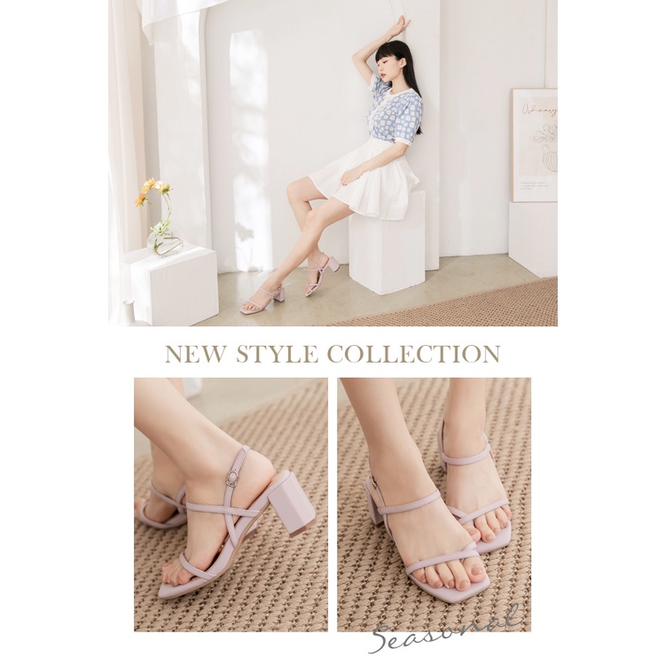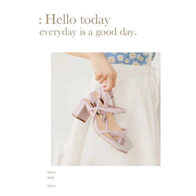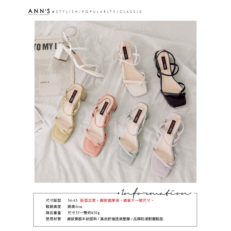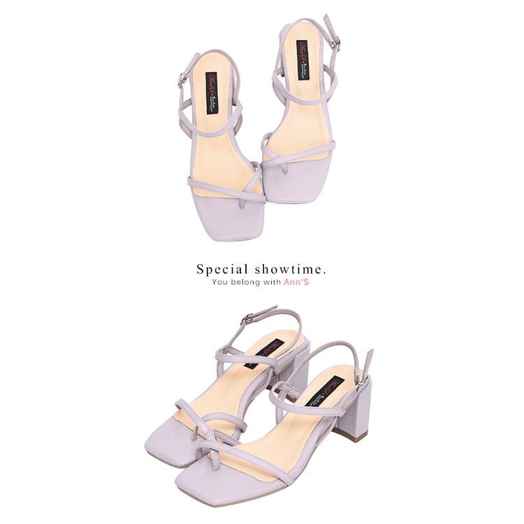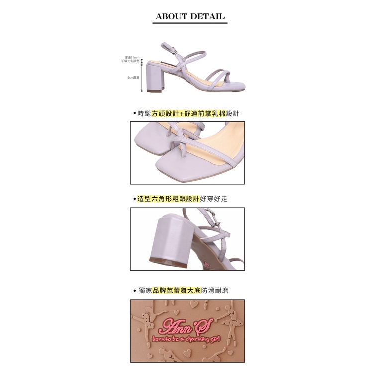 Ann’S糖果清甜-細帶交叉套趾側V顯瘦六角粗跟方頭涼鞋6cm-紫