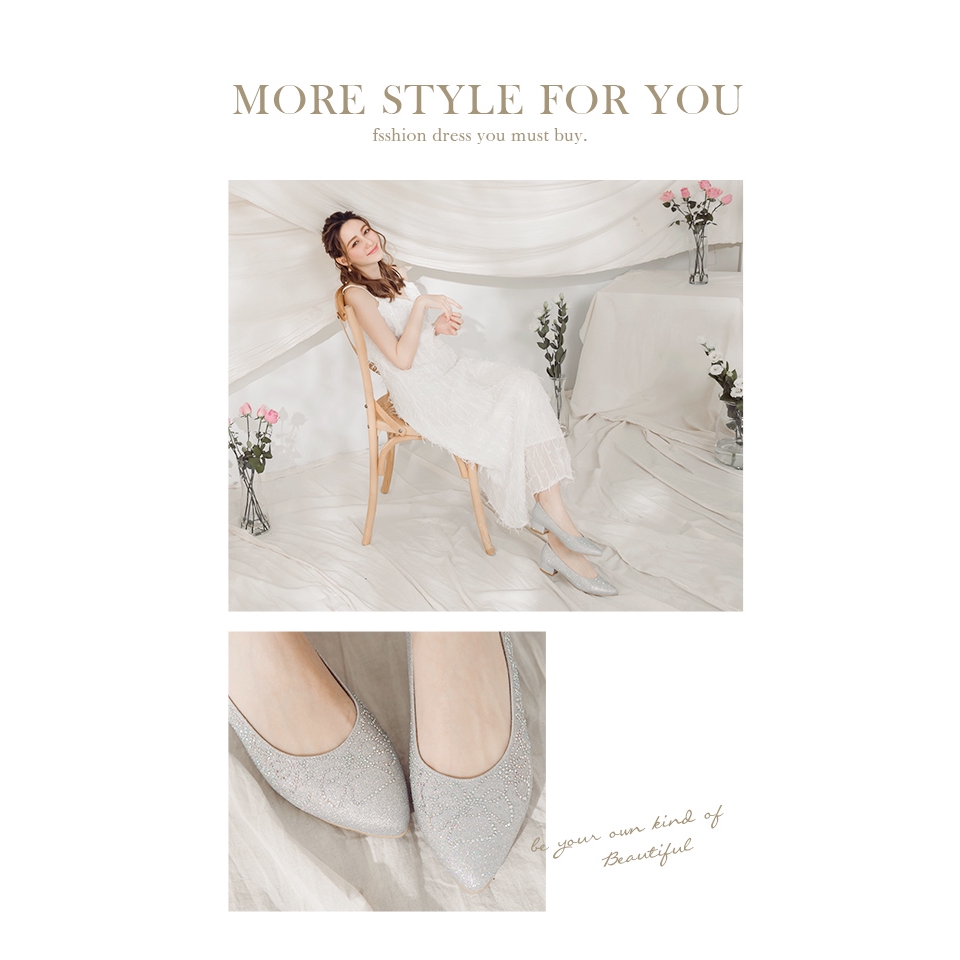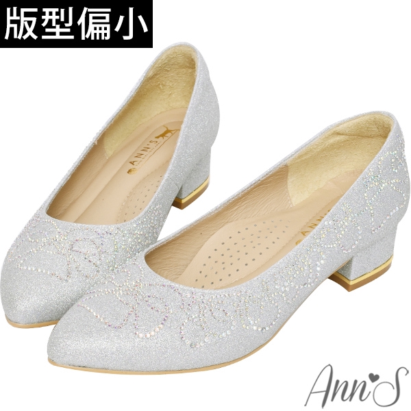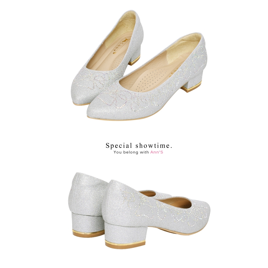 Ann’S璀璨流線手工燙鑽-尖頭舒適低跟婚鞋3.5cm-銀