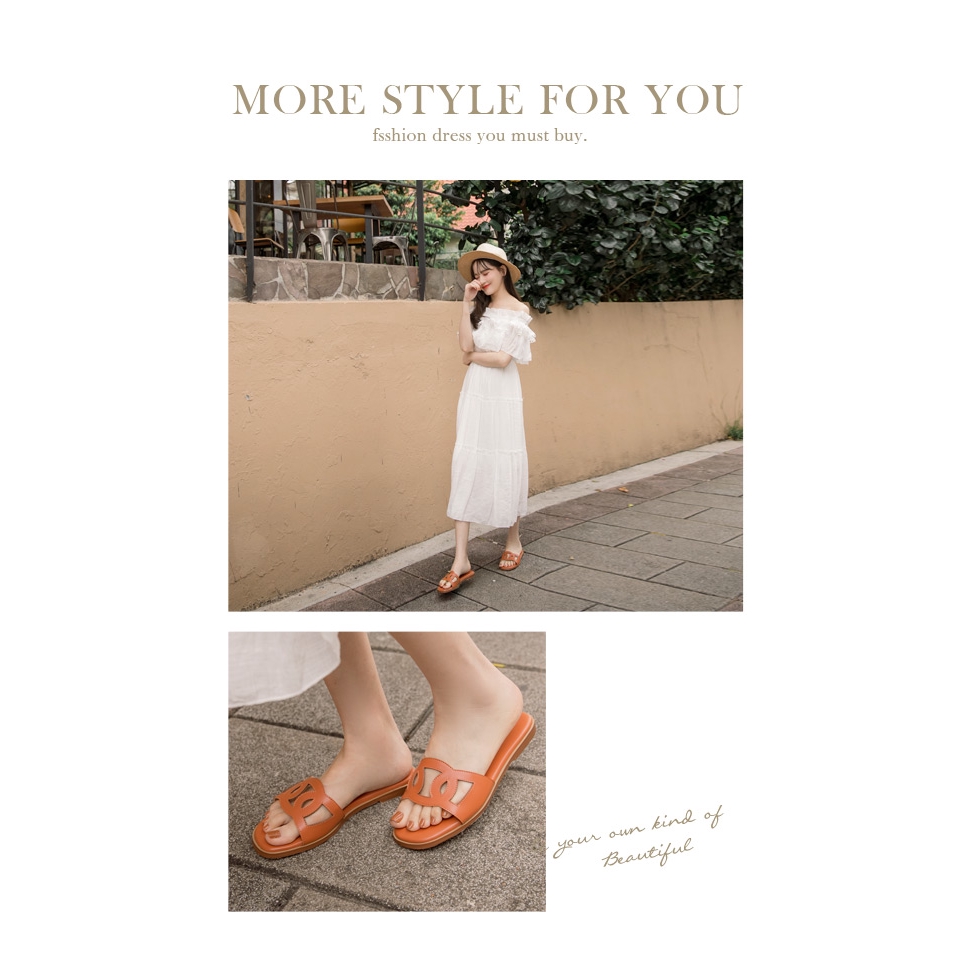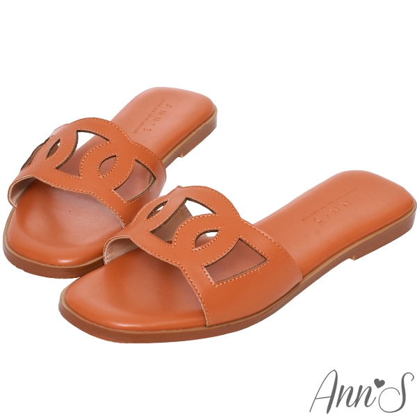 Ann’S不凡氣質-名媛風鏤空方頭平底涼拖鞋-橘