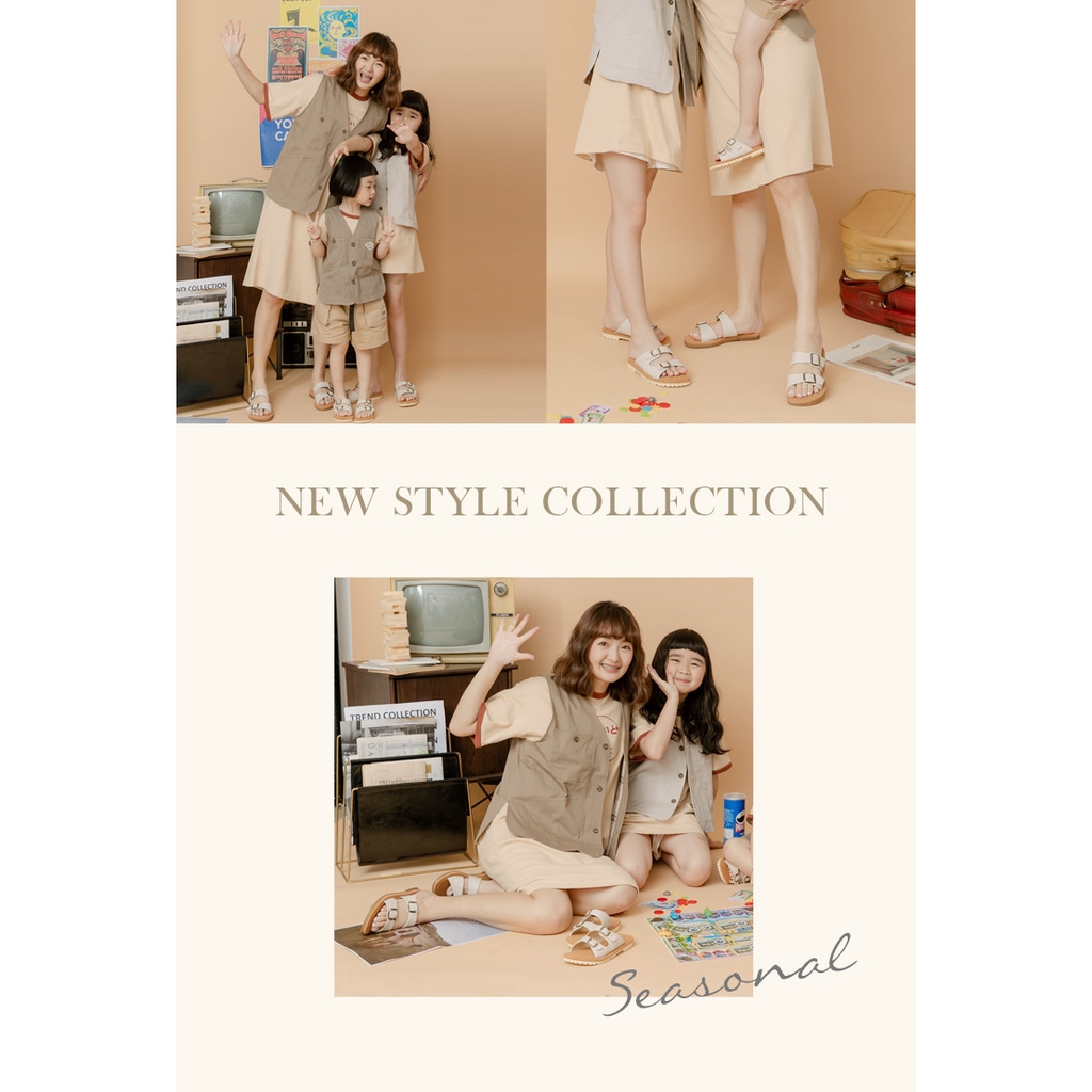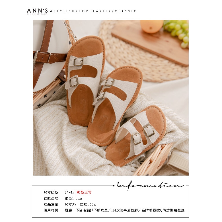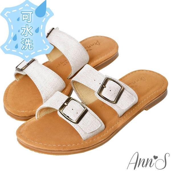 Ann’S水洗牛皮-復古雙扣帶貓抓不破涼拖鞋-米