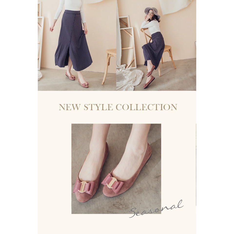 Ann’S甜蜜物語-立體雙層蝴蝶結全真皮平底娃娃鞋-粉