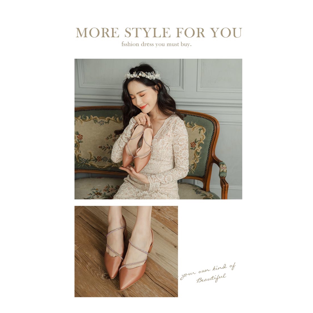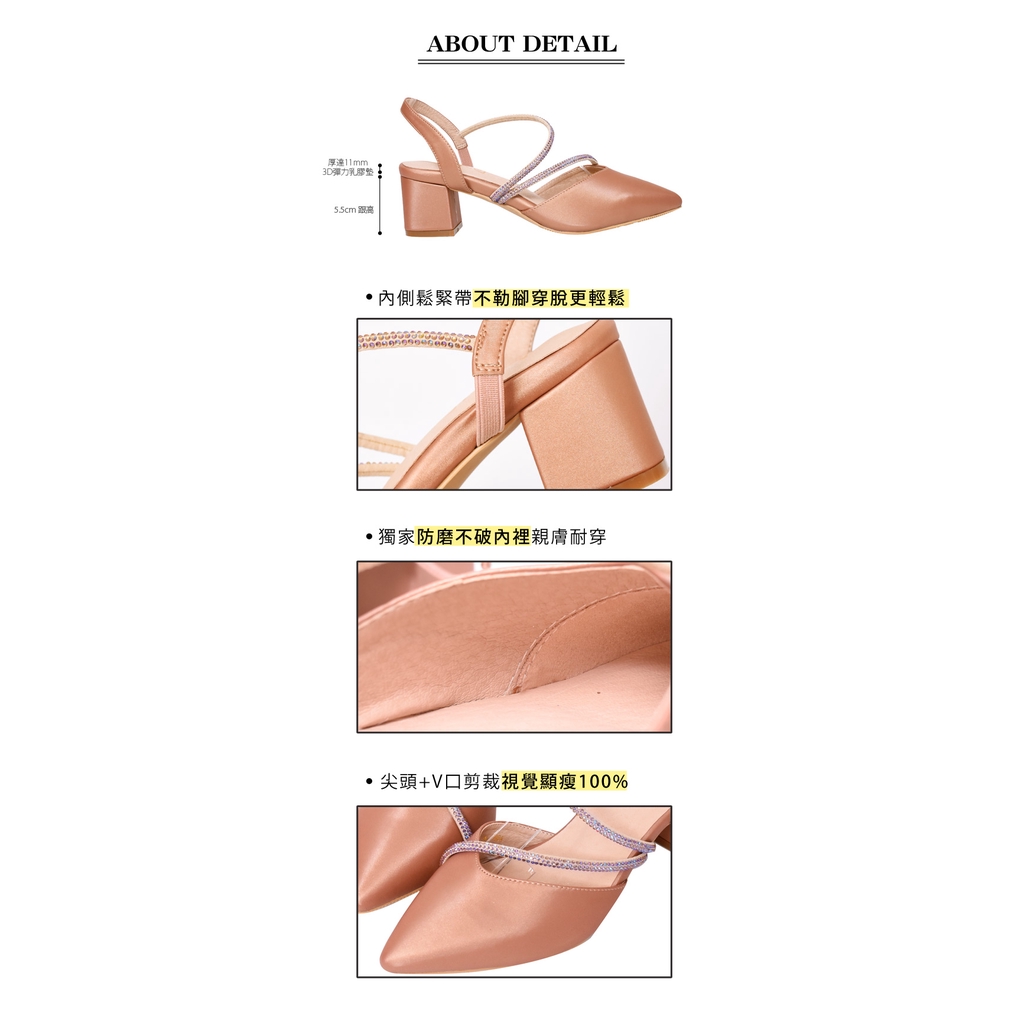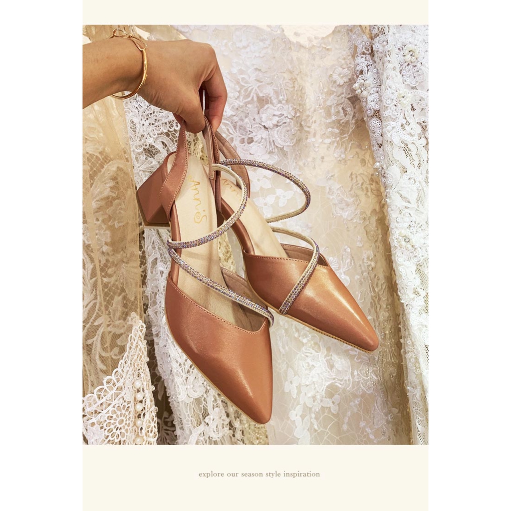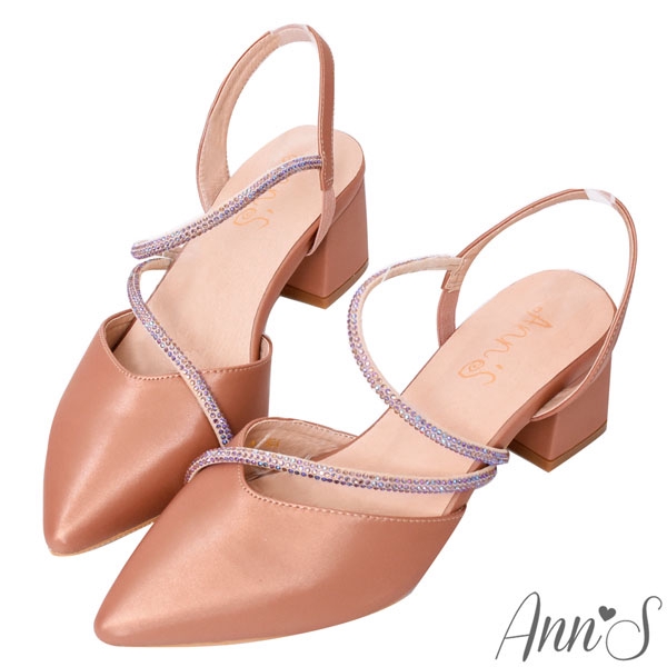Ann’S約會勝利-細膩彩鑽顯瘦曲線拉帶尖頭跟鞋5.5cm-粉棕(版型偏小)