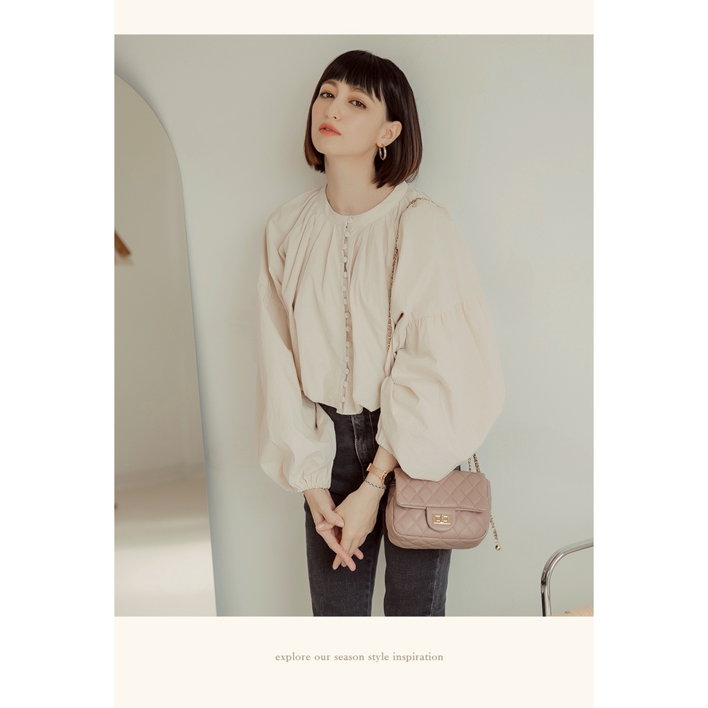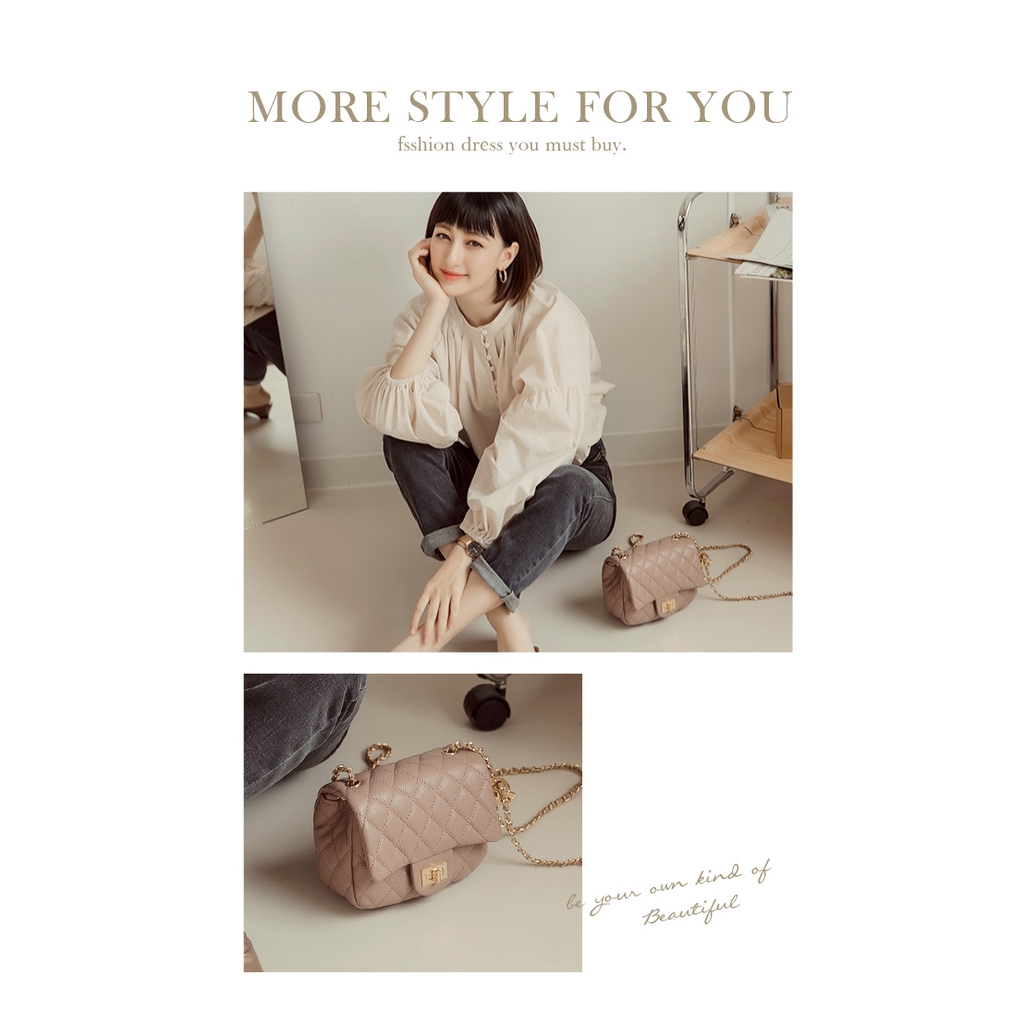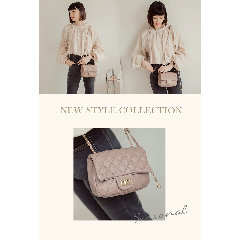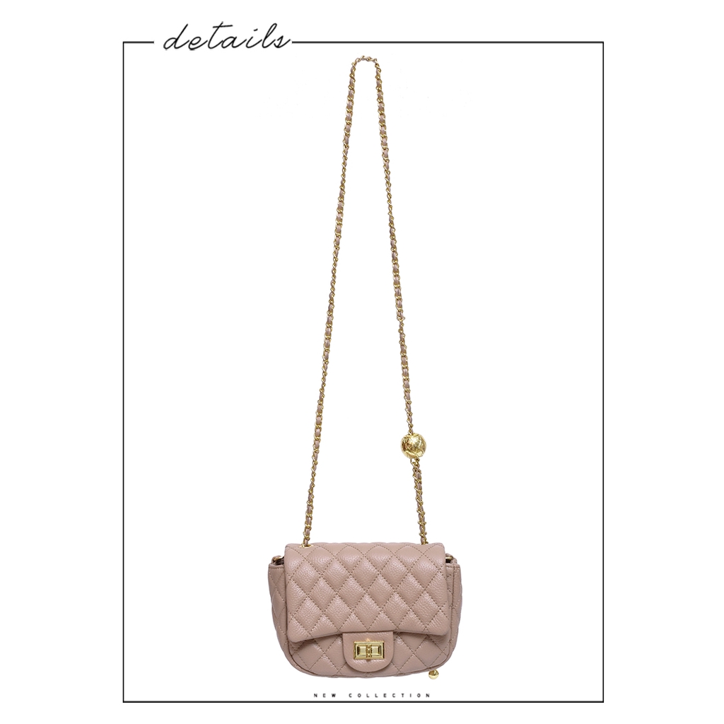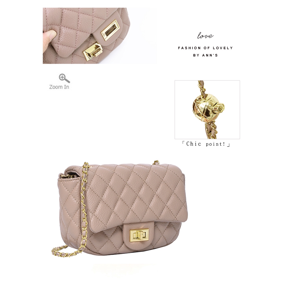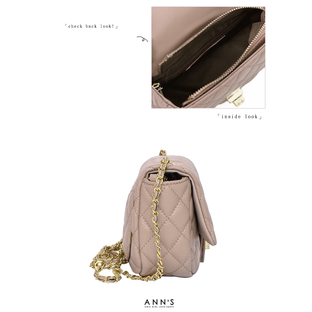 Ann’S小金球20方胖子頭層牛皮菱格鍊包-粉