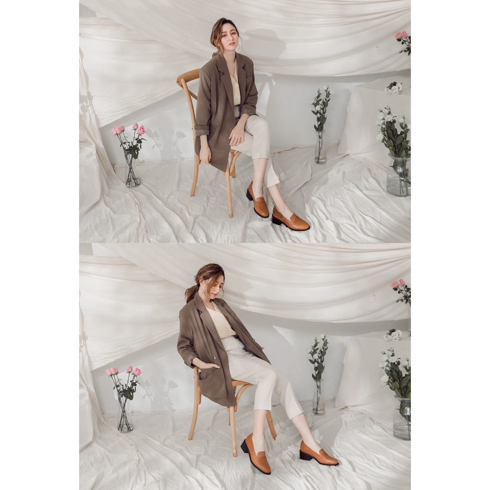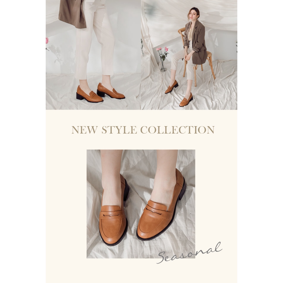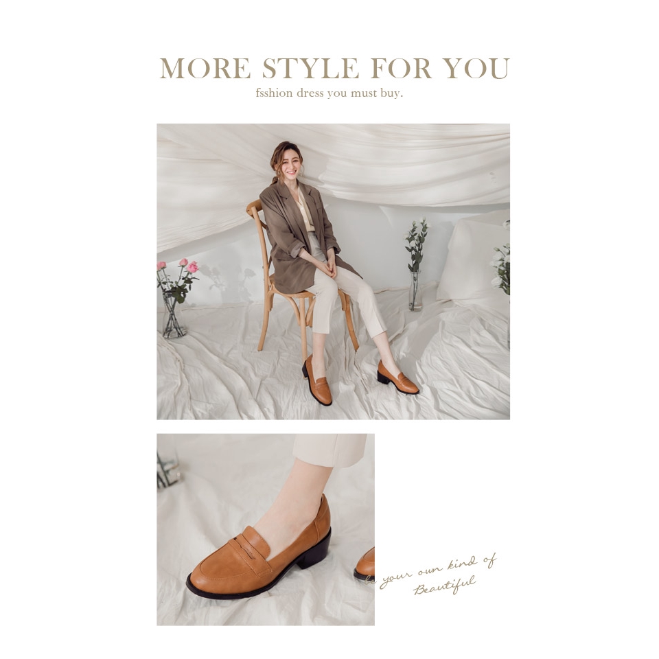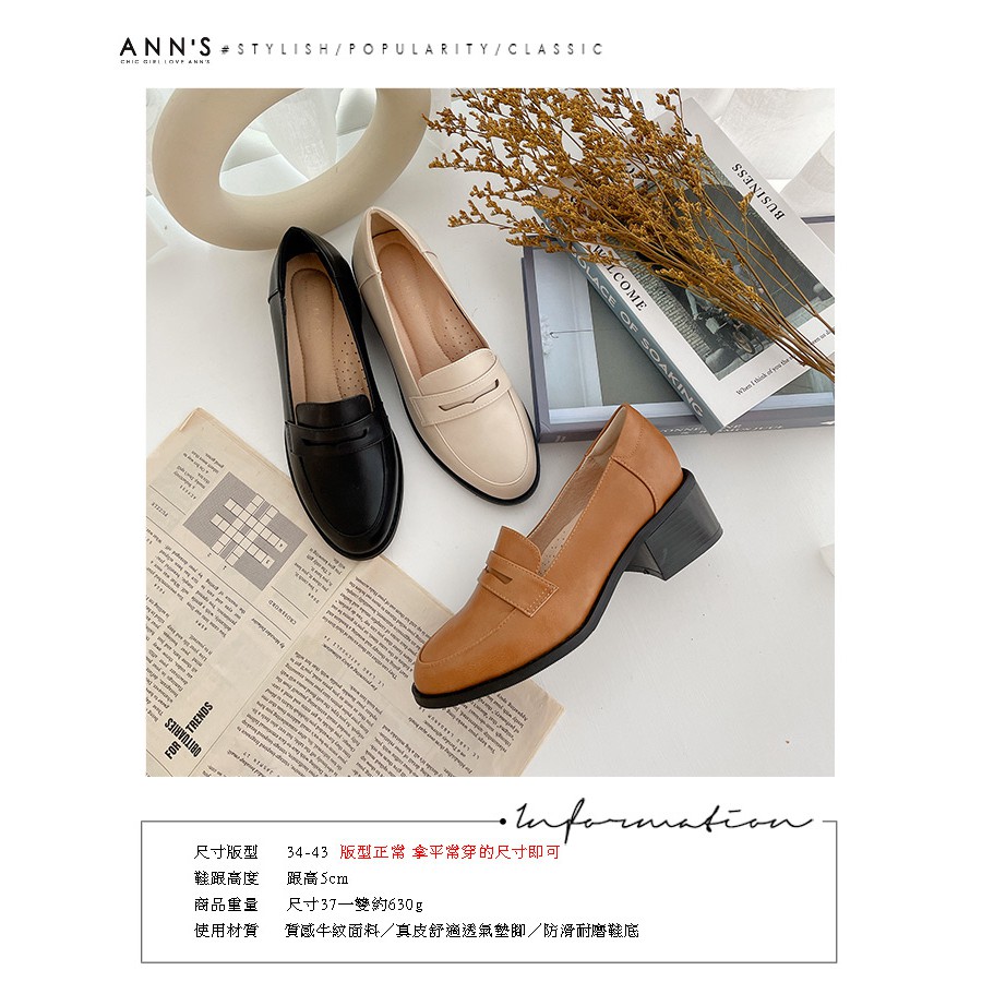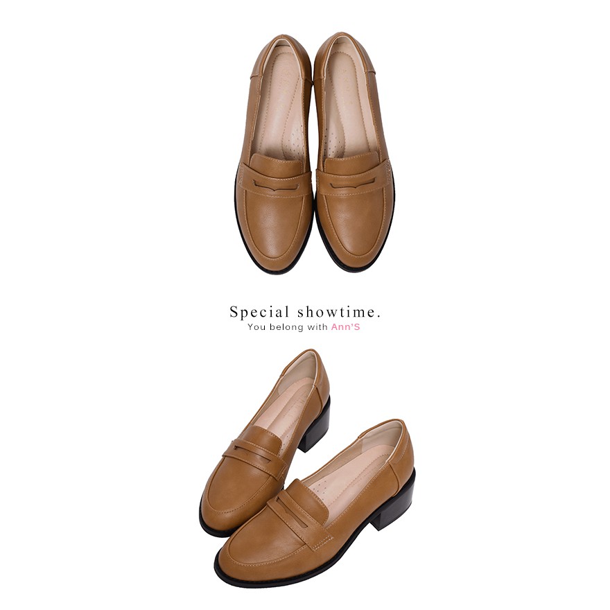 Ann’S學院提案-質感素面粗跟樂福鞋5cm-棕