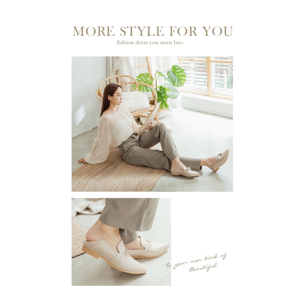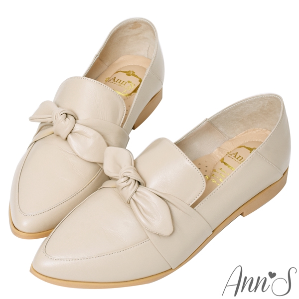 Ann’S超柔軟綿羊皮-可拆立體蝴蝶結兩穿穆勒尖頭樂福鞋-杏