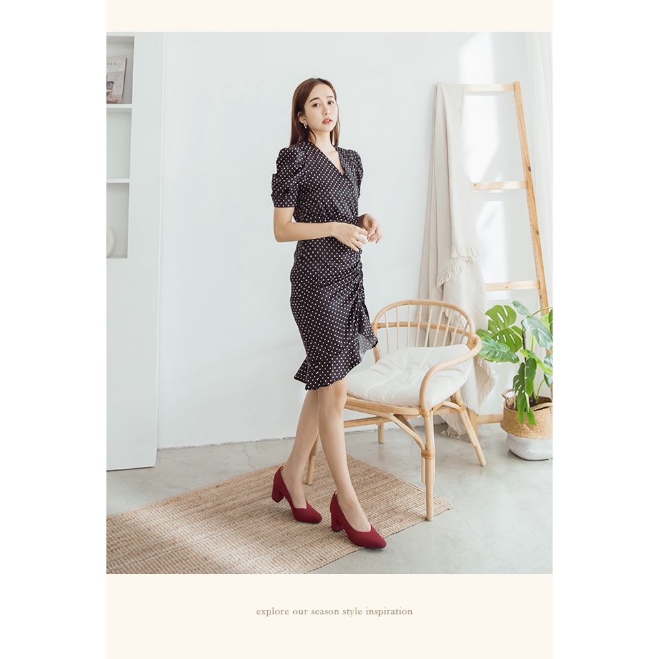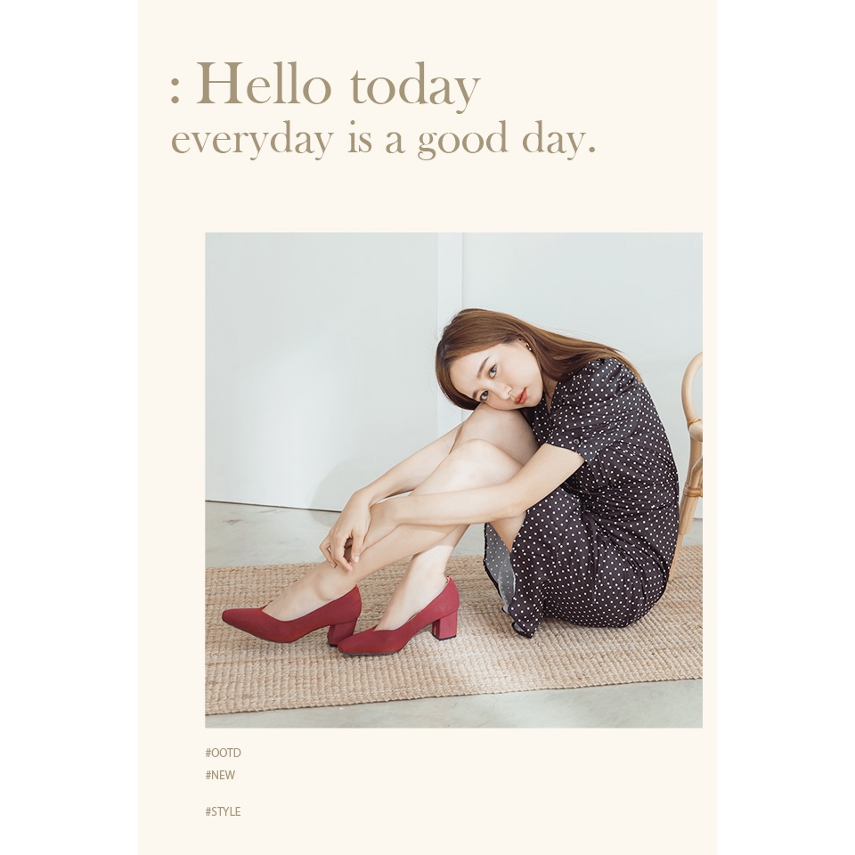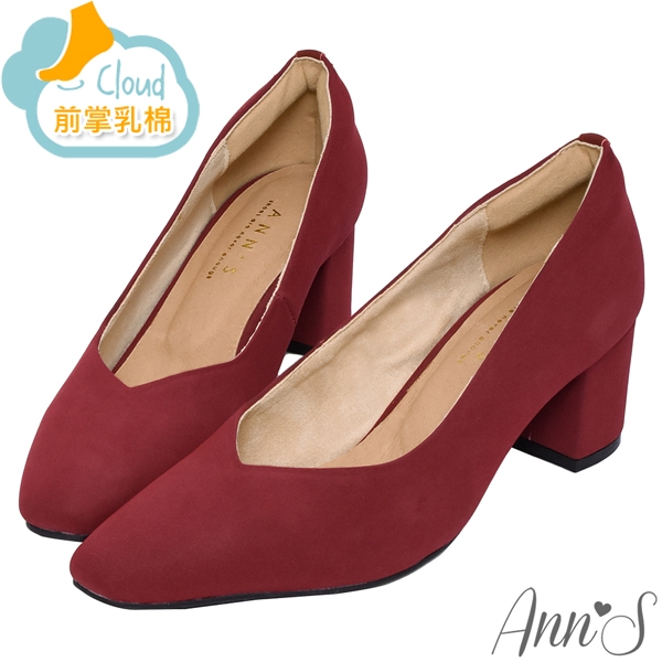 Ann’S天堂版型-顯瘦V口霧面純色粗跟方頭跟鞋5.5cm-紅
