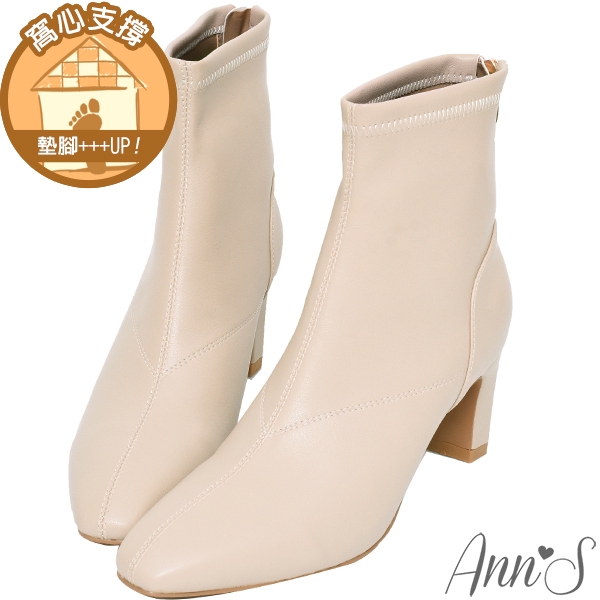 Ann’S充滿自信-美型貼腿剪裁方頭扁跟短靴6cm-杏灰