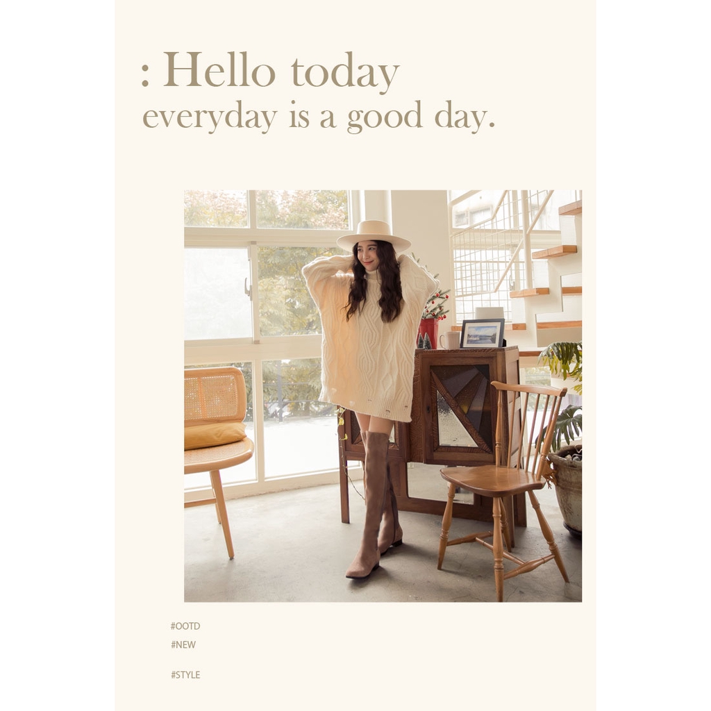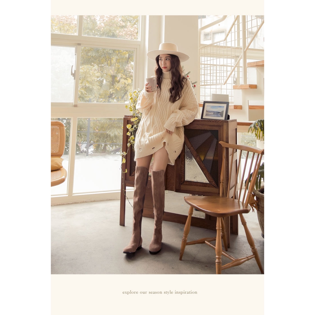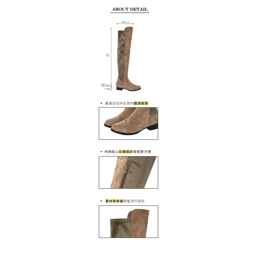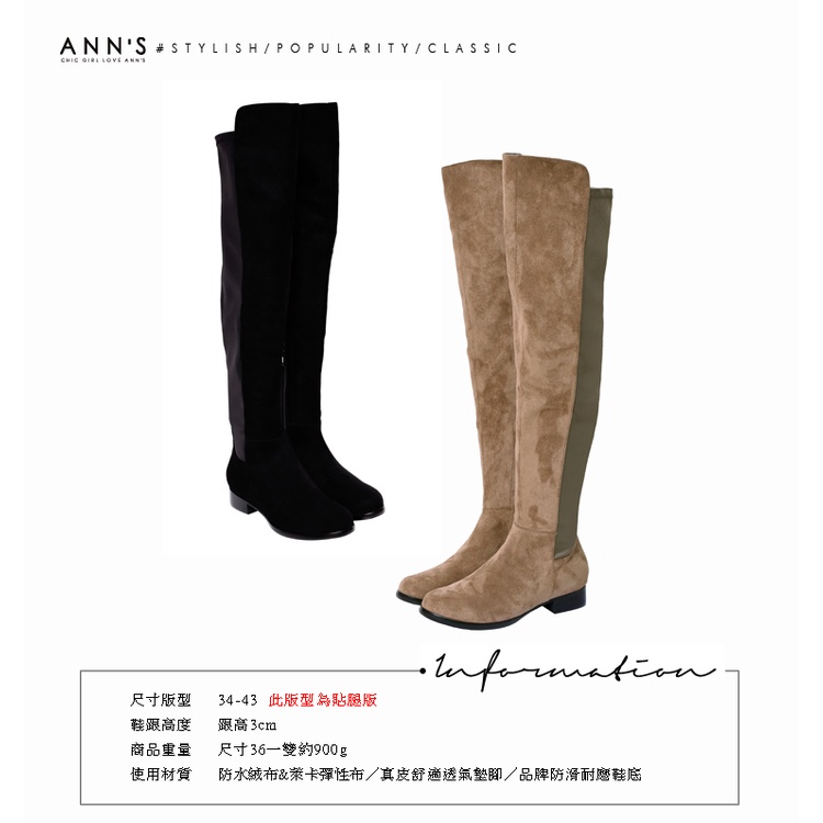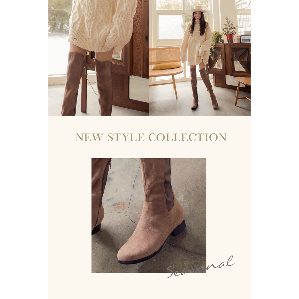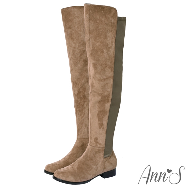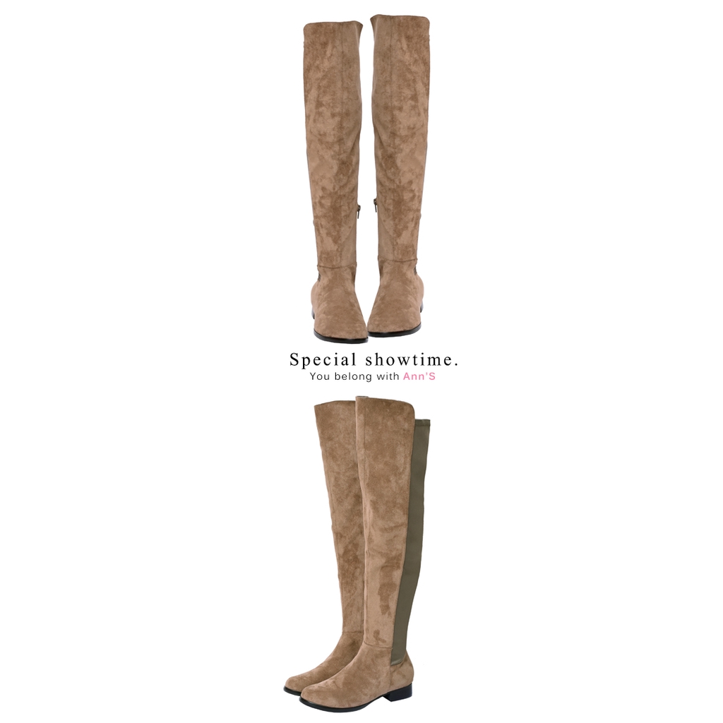 Ann’S貼腿版-防水絨布大曬鉛筆腿超彈性拼接過膝靴-可可