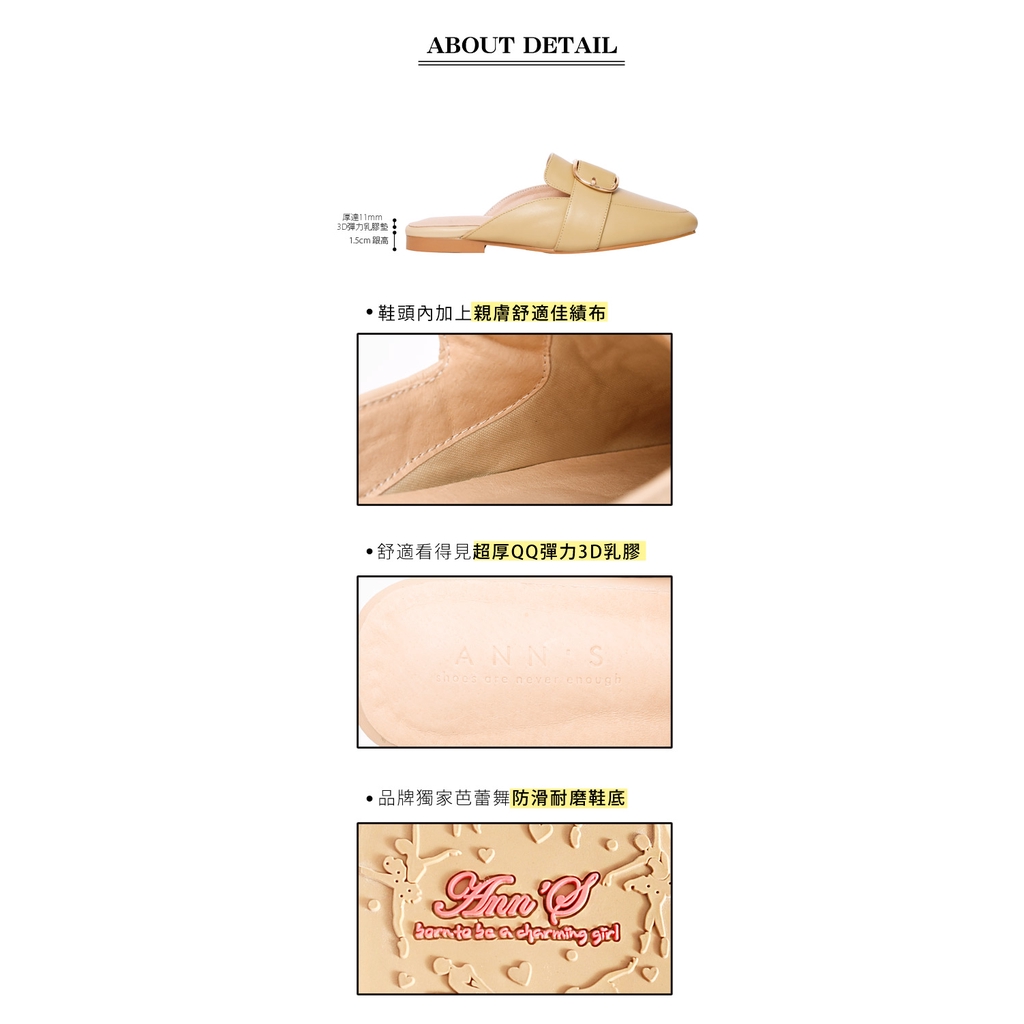 Ann’S質感真小羊皮D型扣帶穆勒鞋-黃(版型偏小)