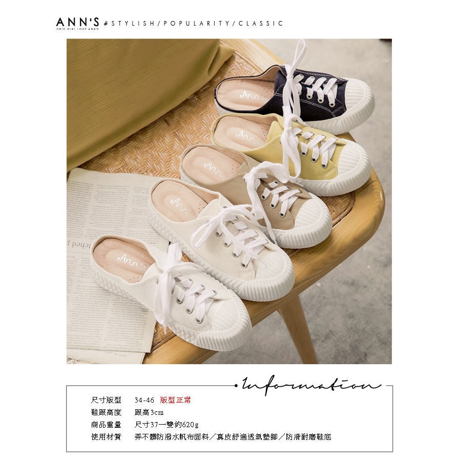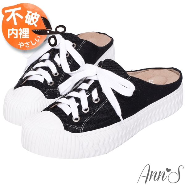 Ann’S黑科技-弄不髒防潑水綁帶帆布餅乾穆勒鞋-黑