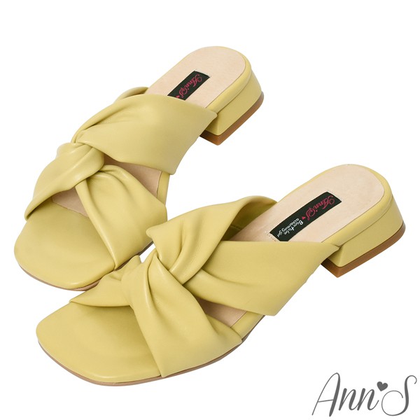 Ann’S棉質感受-柔軟扭結方頭涼拖鞋3cm-黃(版型偏小)