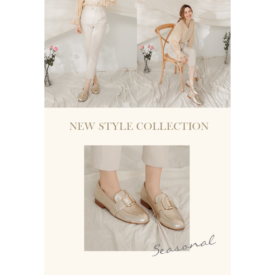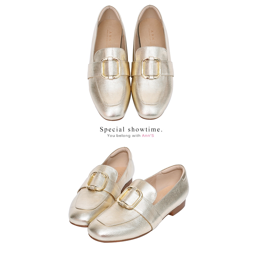 Ann’S霓光協奏曲-細緻蛇紋金色方環樂福鞋-金