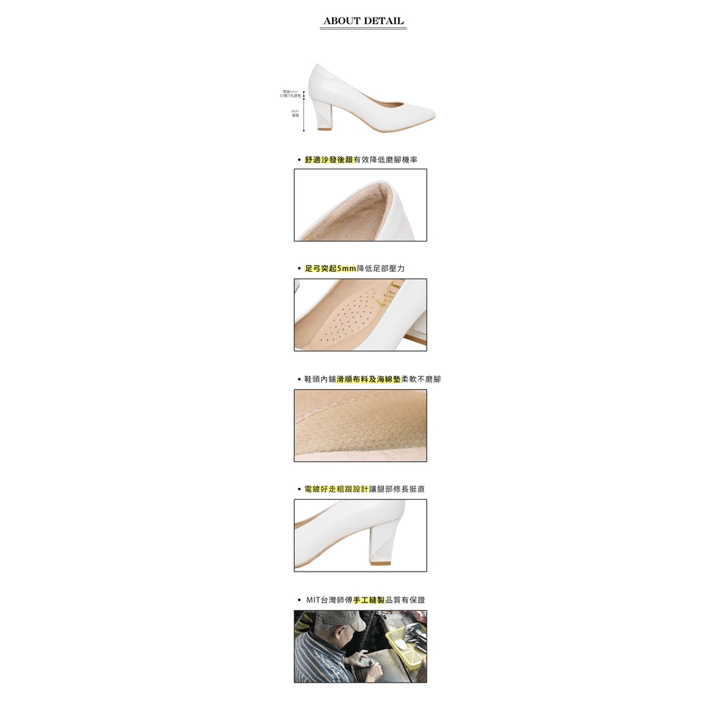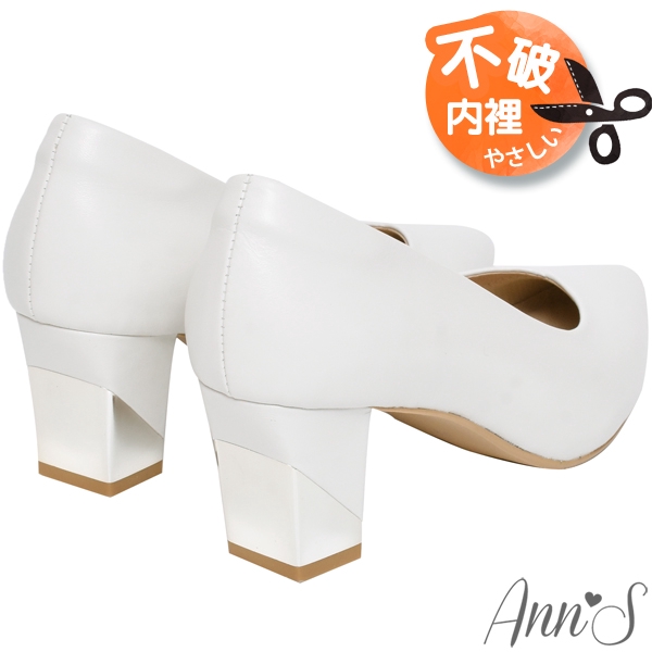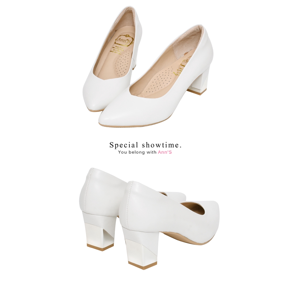 Ann’S上班族必備-小羊皮顯瘦V口電鍍尖頭粗跟包鞋6cm-白