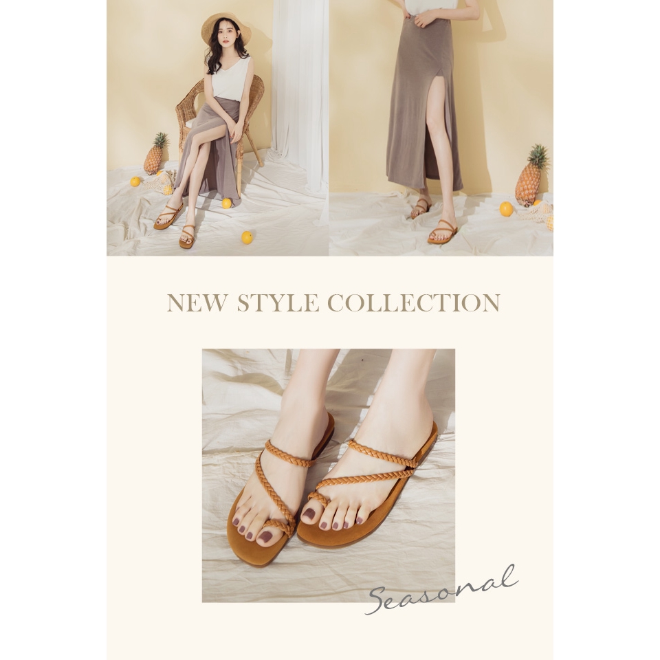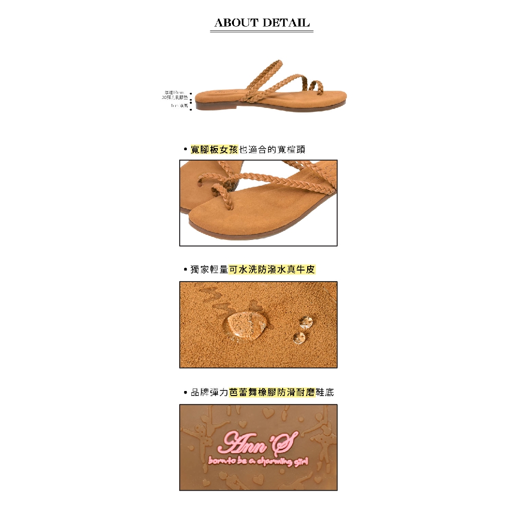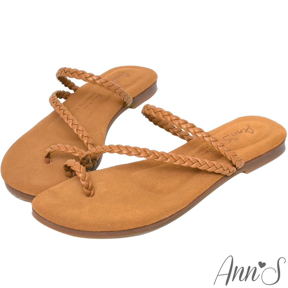 Ann’S水洗牛皮-悠閒時空套拇指編織平底涼鞋-棕