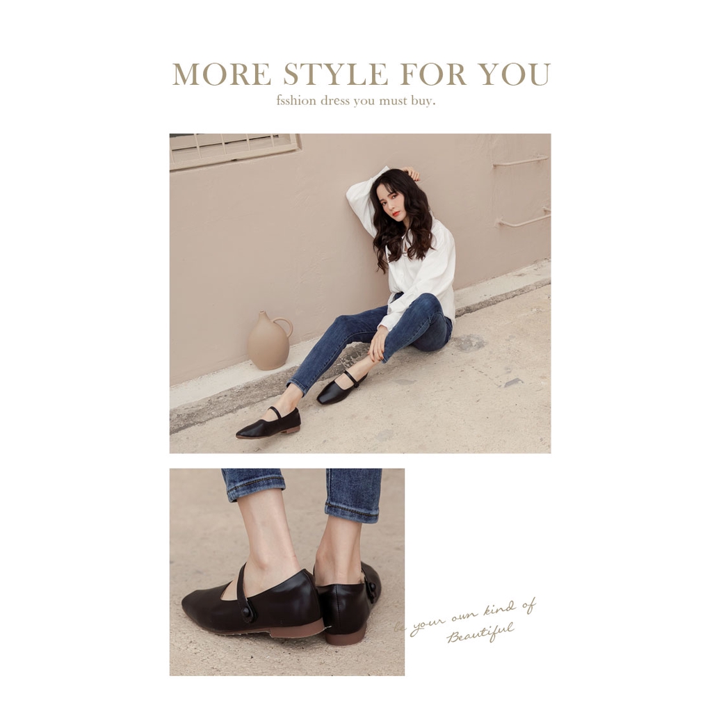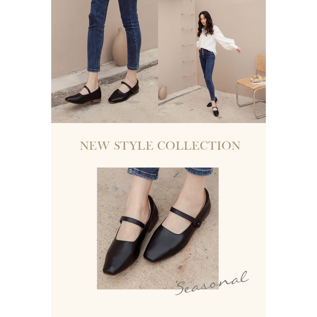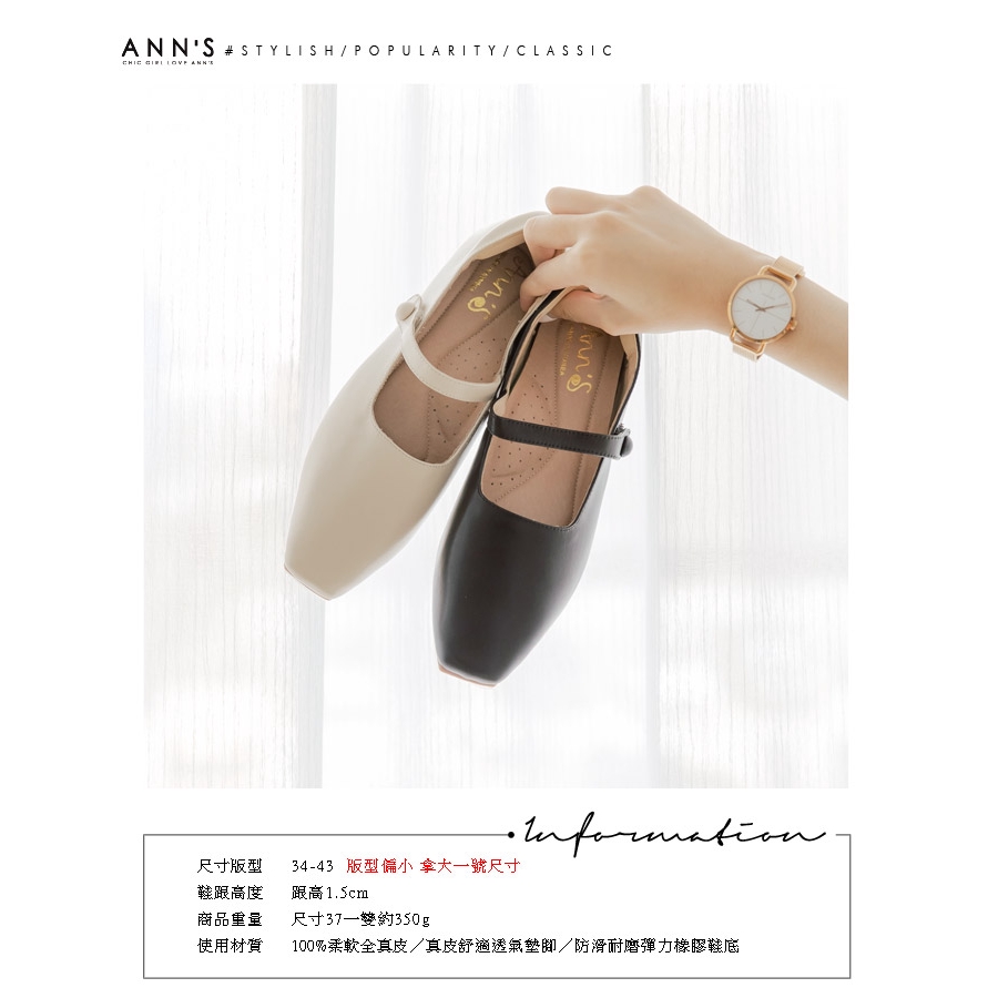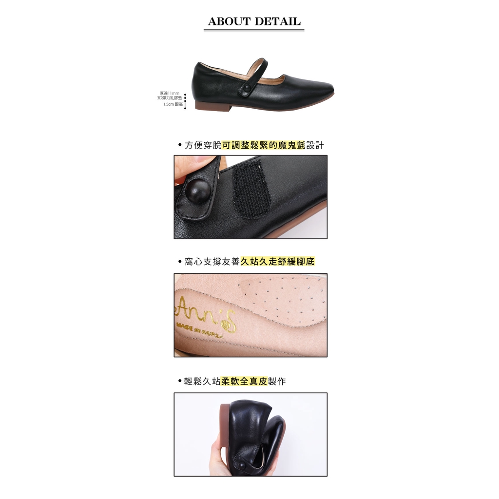 Ann’S平日藝文-瑪莉珍小方頭全真皮平底鞋-黑(版型偏小)