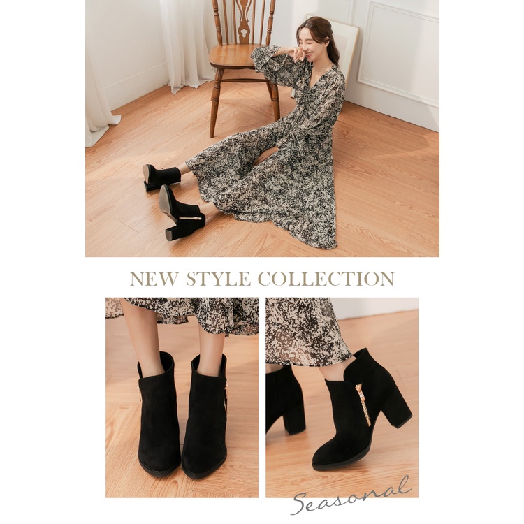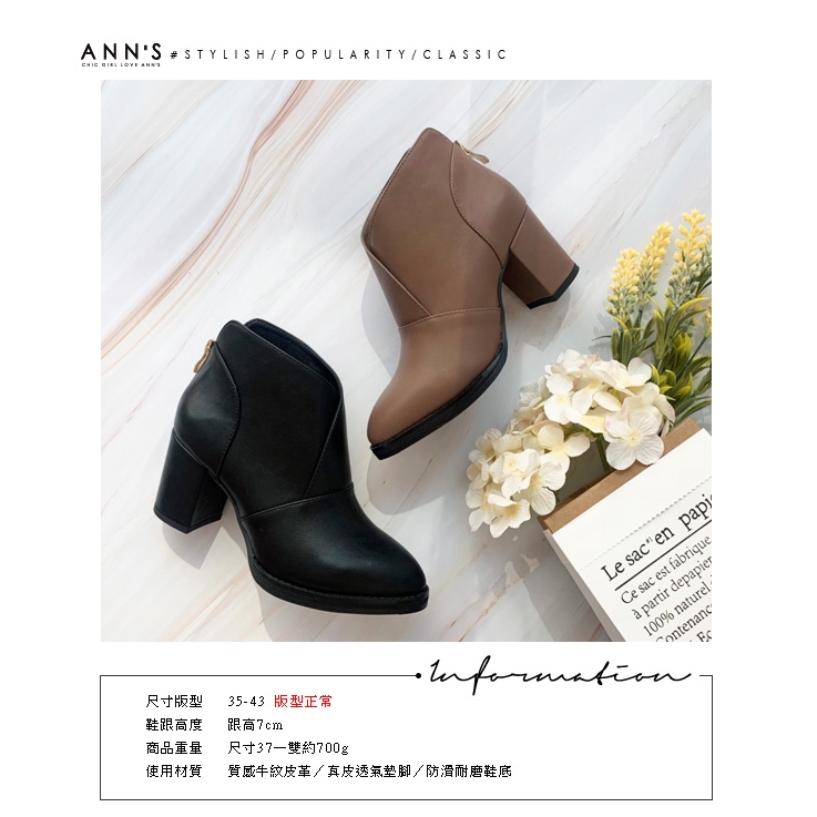 Ann’S光采女人-防水絨布金拉鍊前低顯瘦粗跟短靴-黑