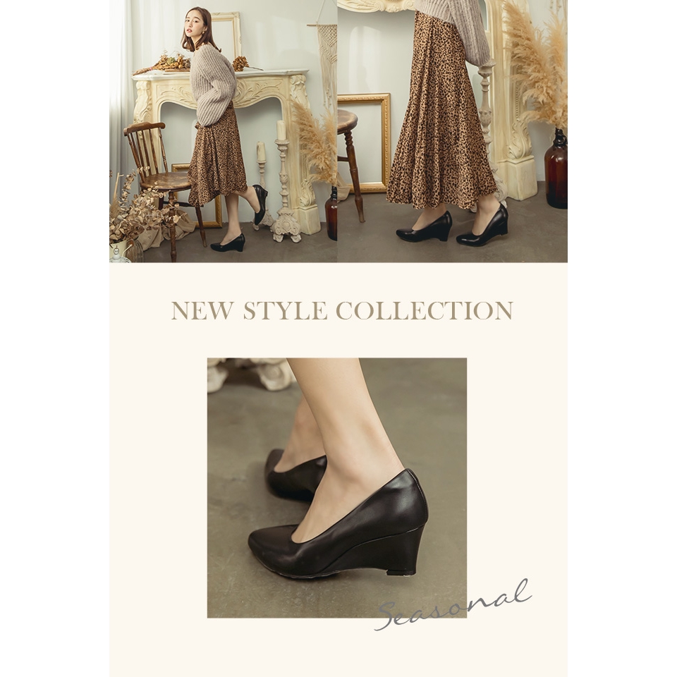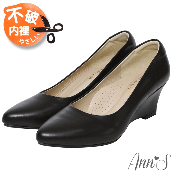 Ann’S通勤魅力-精品小羊皮楔型坡跟尖頭包鞋-黑
