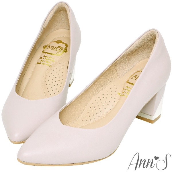 Ann’S上班族必備-小羊皮顯瘦V口電鍍尖頭粗跟包鞋6cm-紫