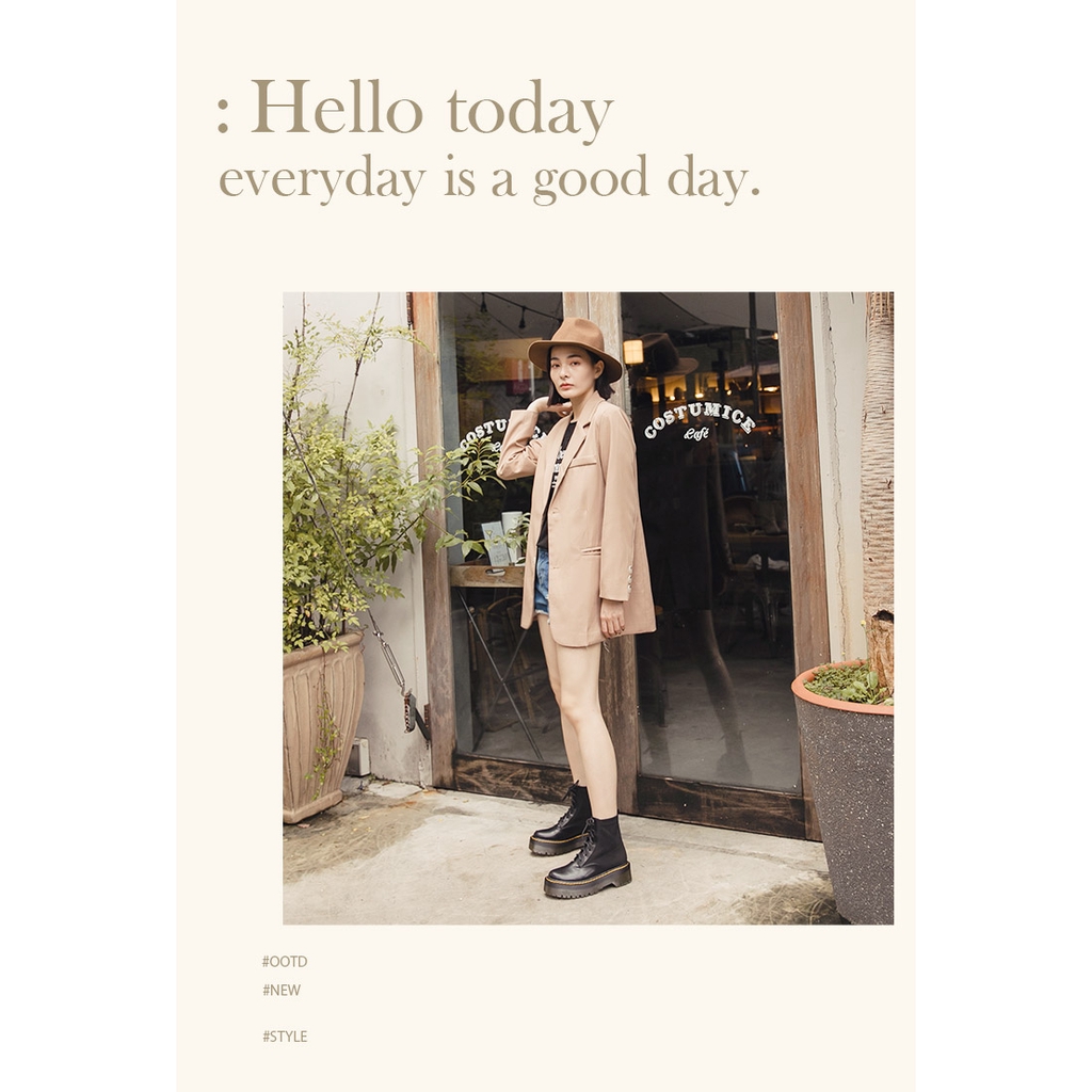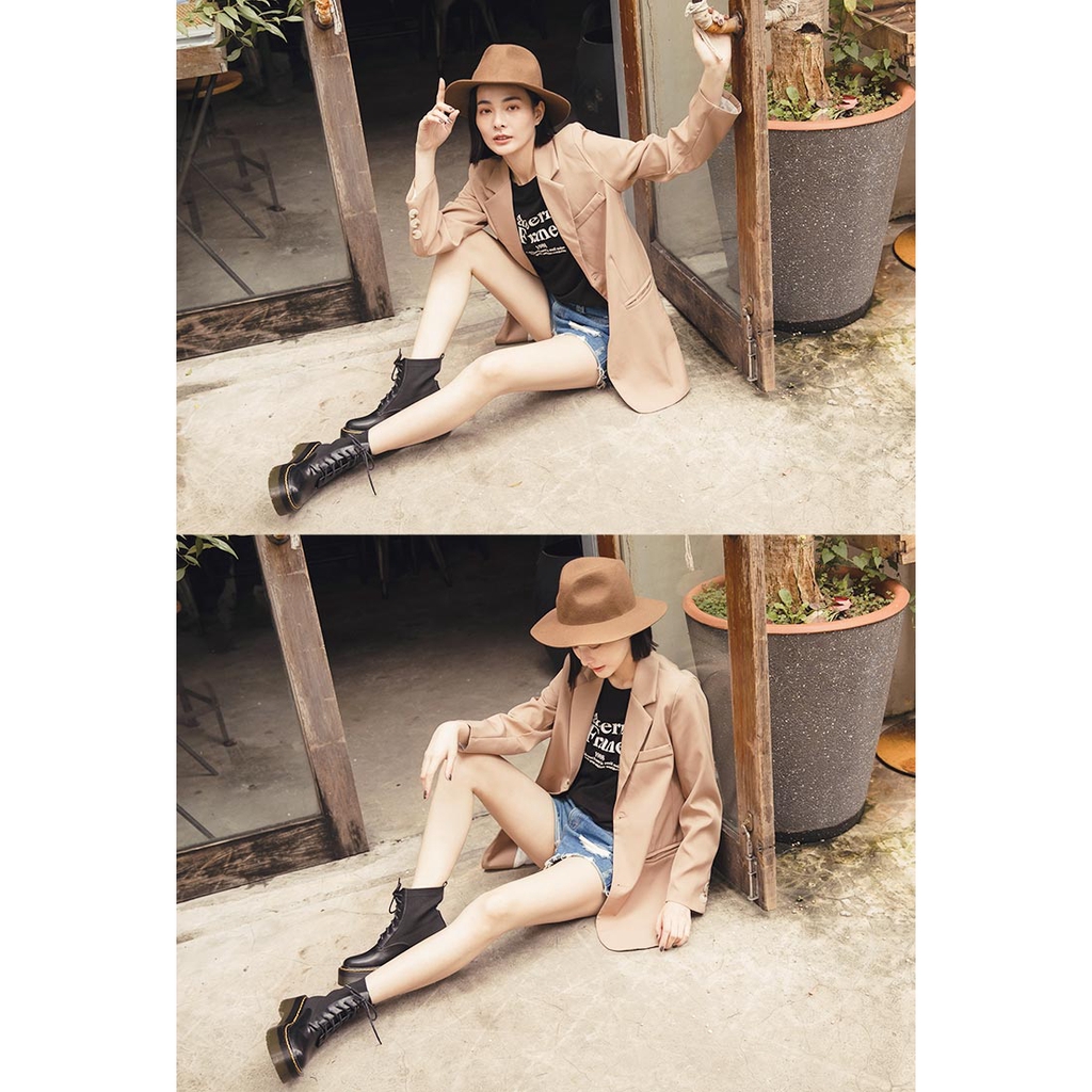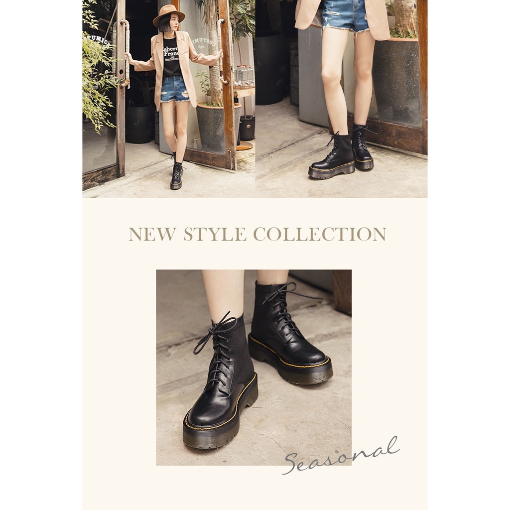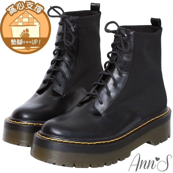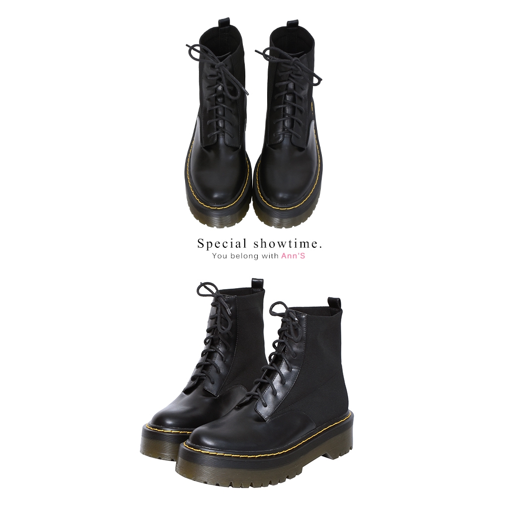 Ann’S韓星同款-襪套式綁帶厚底馬丁靴