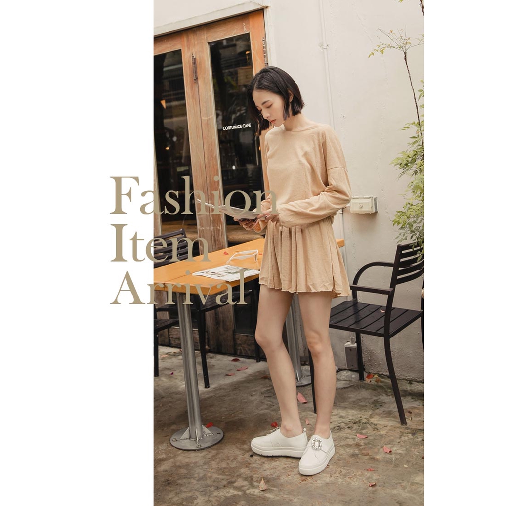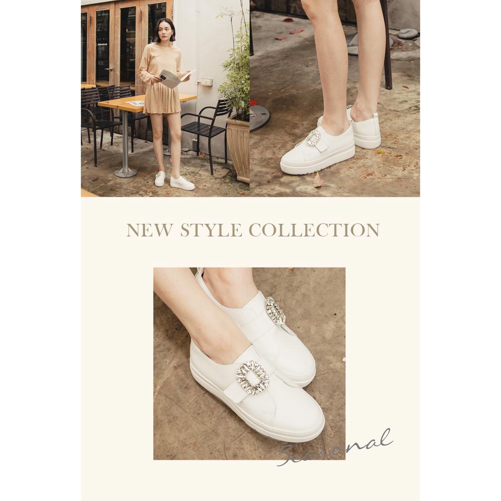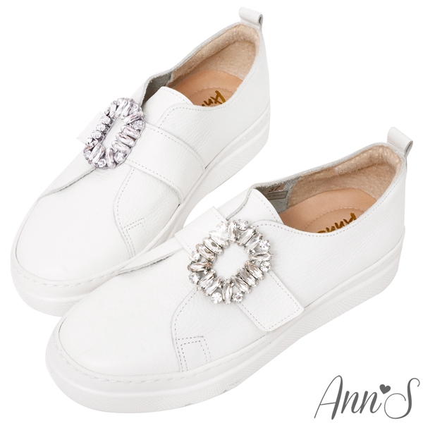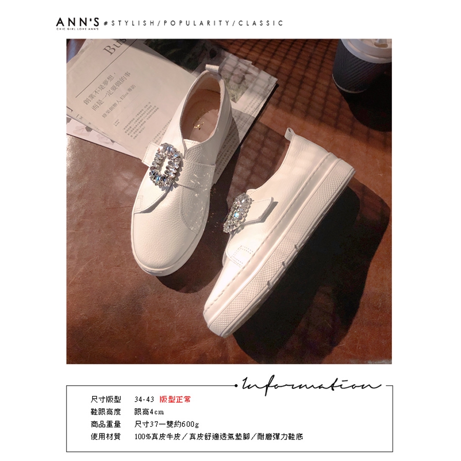 Ann’S閃耀方鑽魔鬼氈牛皮全真皮厚底小白鞋