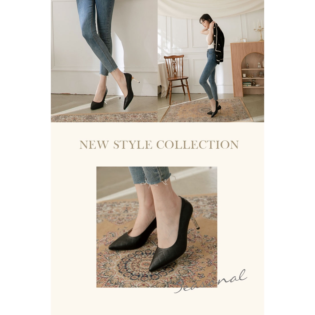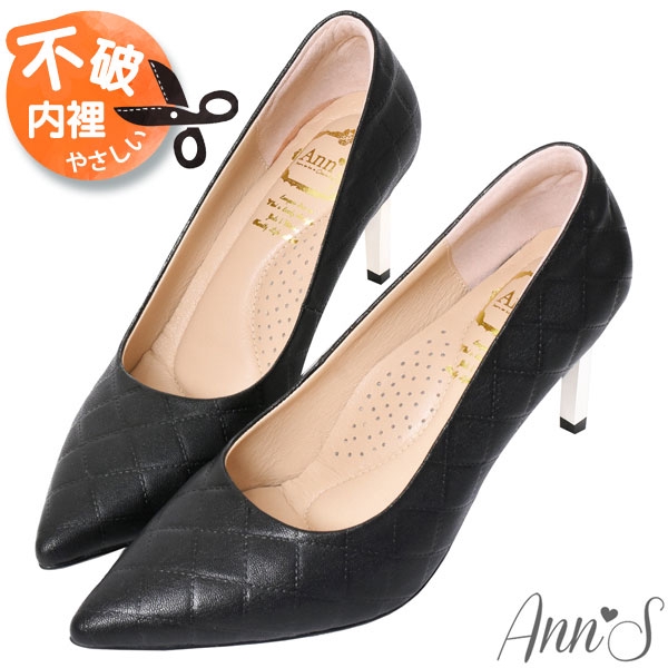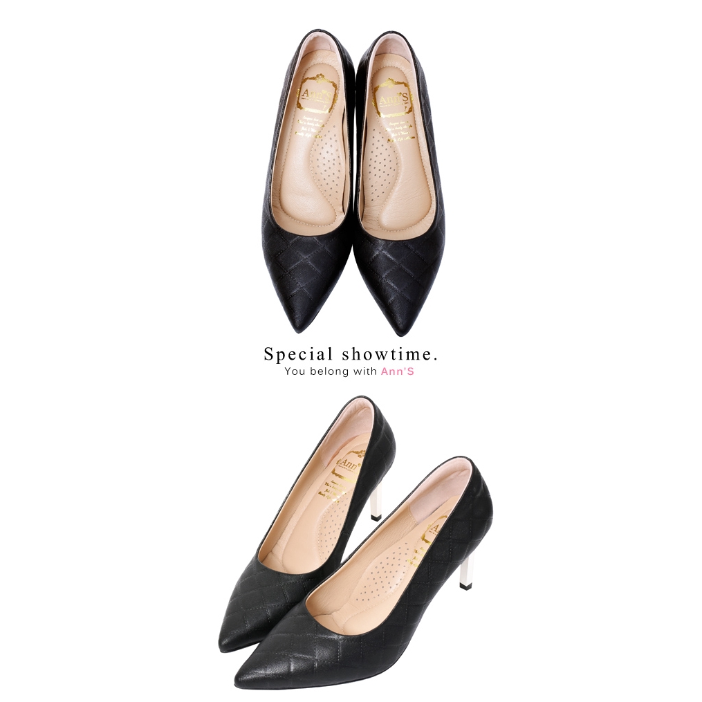 Ann’S嚮往的女人味-小香菱格紋小羊皮電鍍細跟尖頭高跟鞋7.5cm-黑