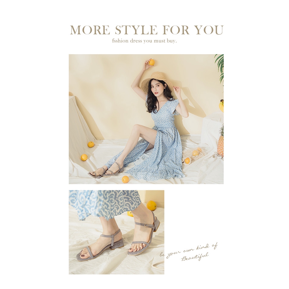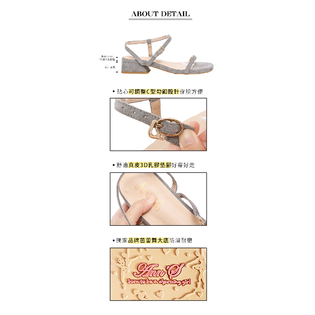 Ann’S輕盈氣質-弧線細帶純色絨質一字方頭涼低跟鞋-灰