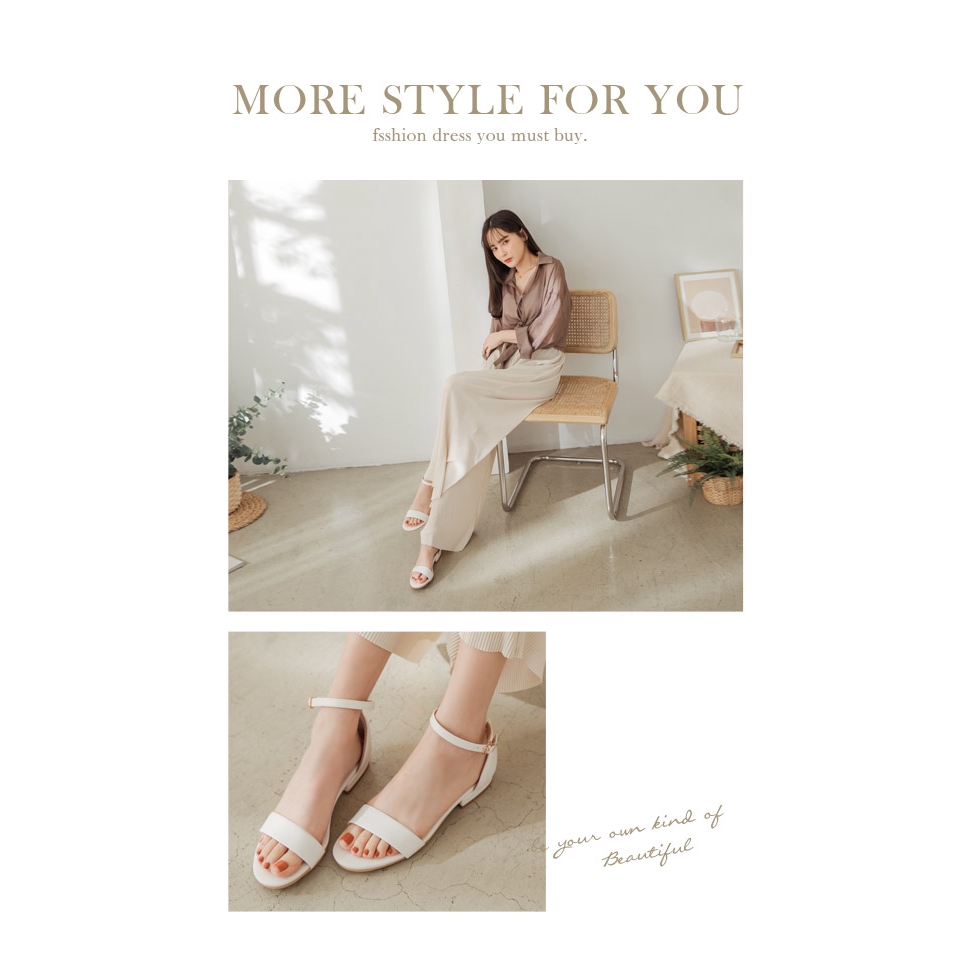 Ann’S不踩雷美腿製造機一字帶涼鞋-寬帶2公分平底-白