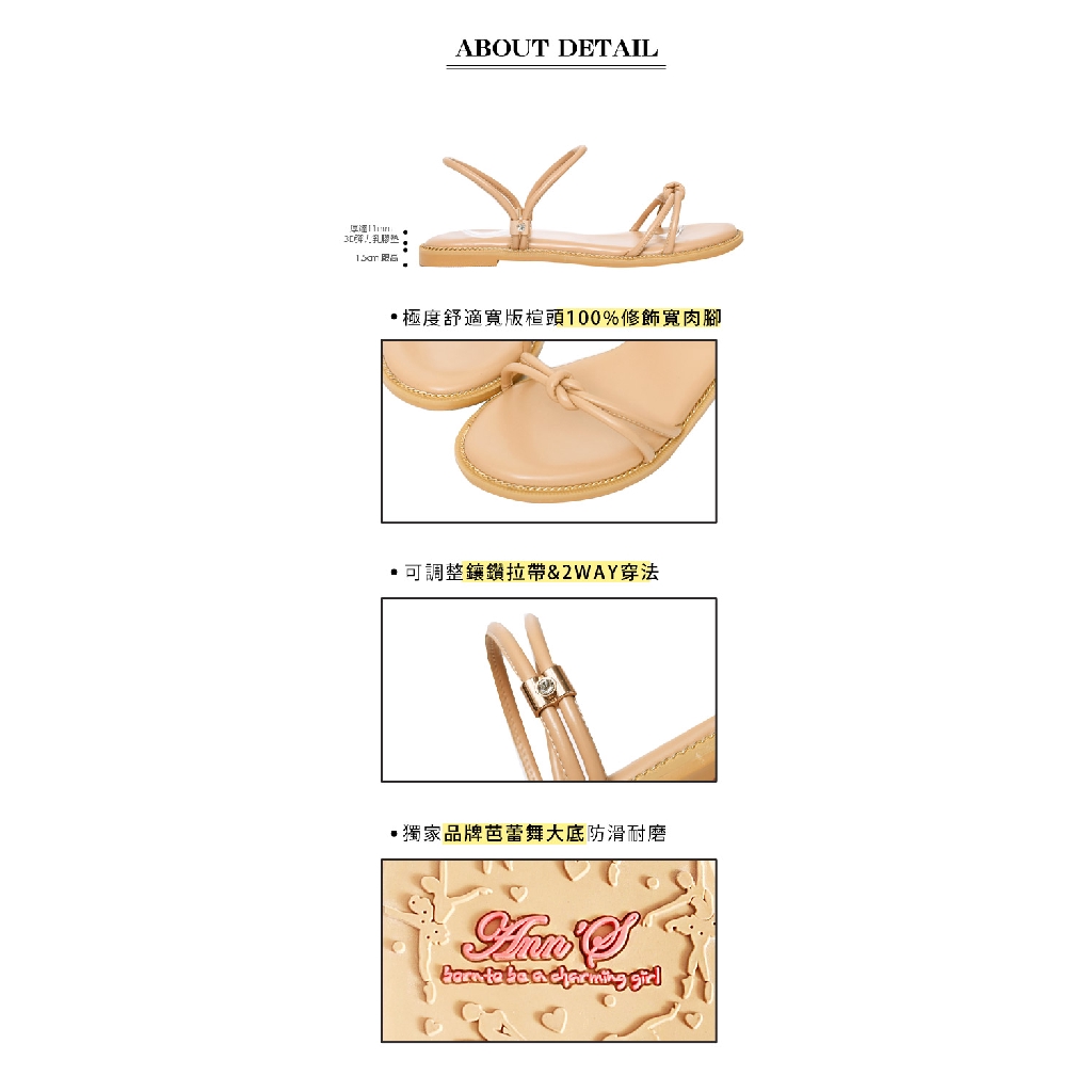 Ann’S微糖小文青-扭結可兩穿寬版平底涼鞋-杏