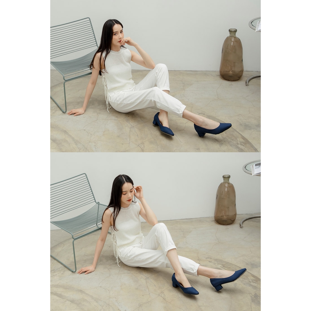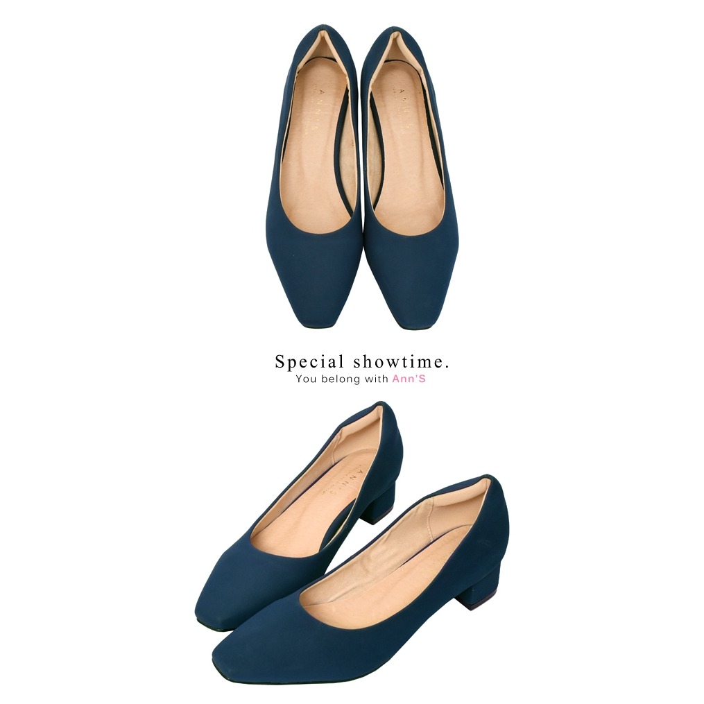 Ann’S真的很舒服-霧面皮革粗跟小方頭鞋3.5cm-深藍