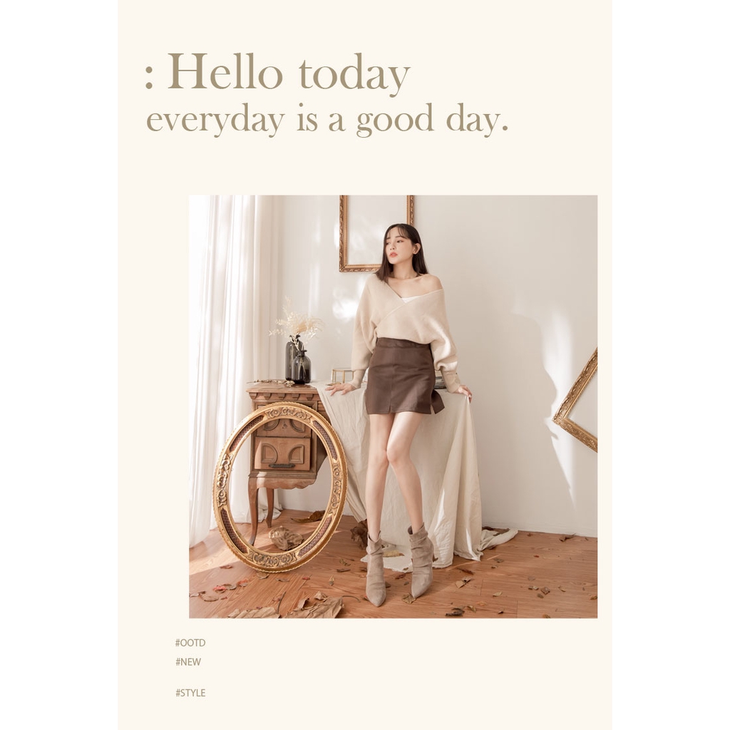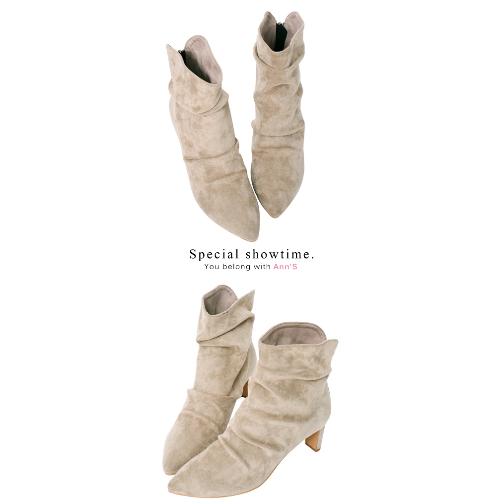 Ann’S香榭時尚-防水絨布自然抓皺V口扁跟襪靴6cm-杏