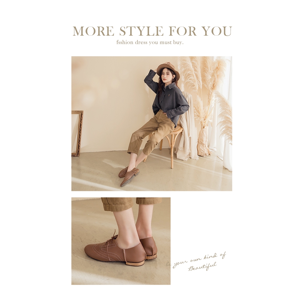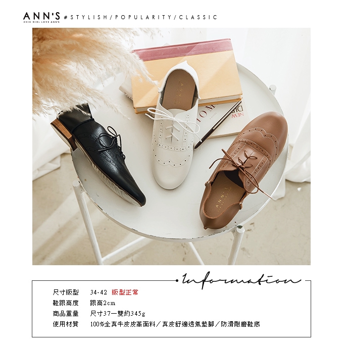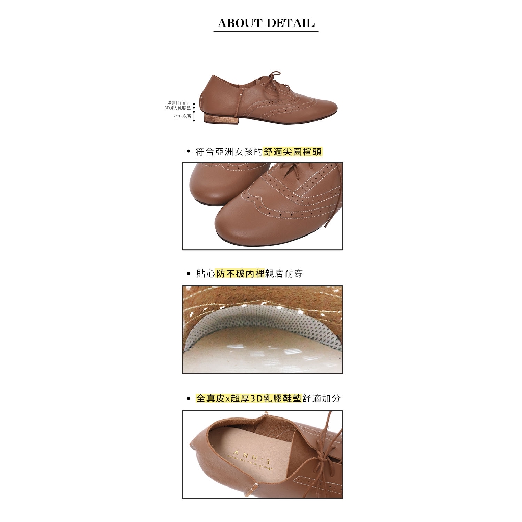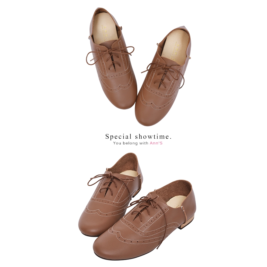 Ann’S乾淨自然-細膩雕花真皮平底英倫牛津鞋-棕