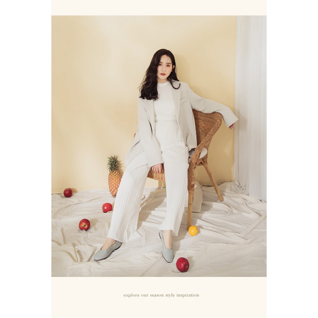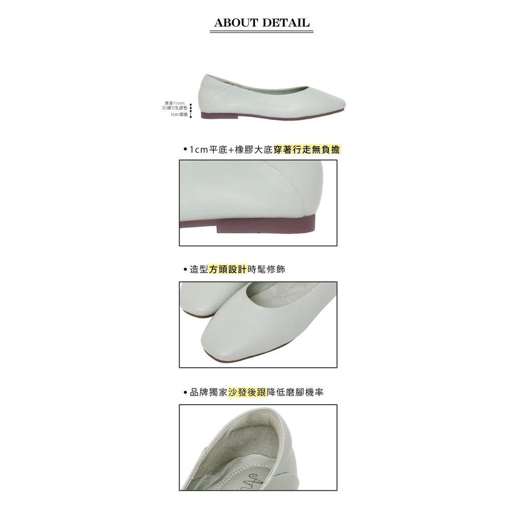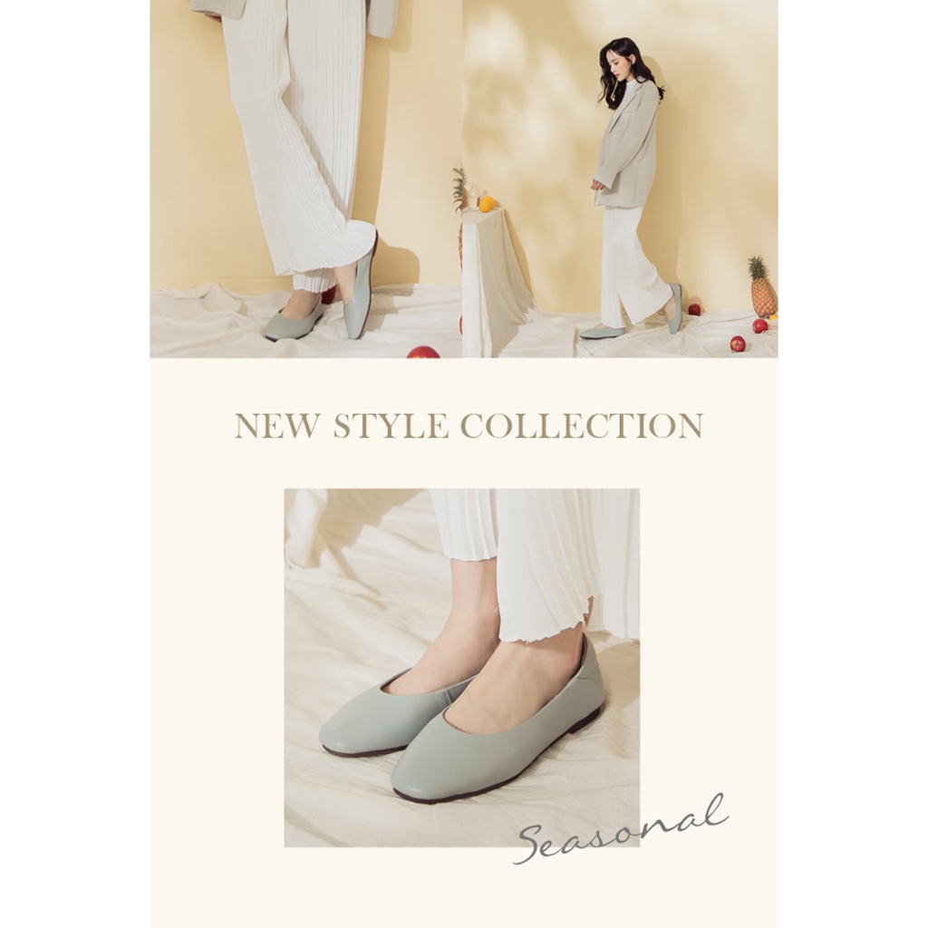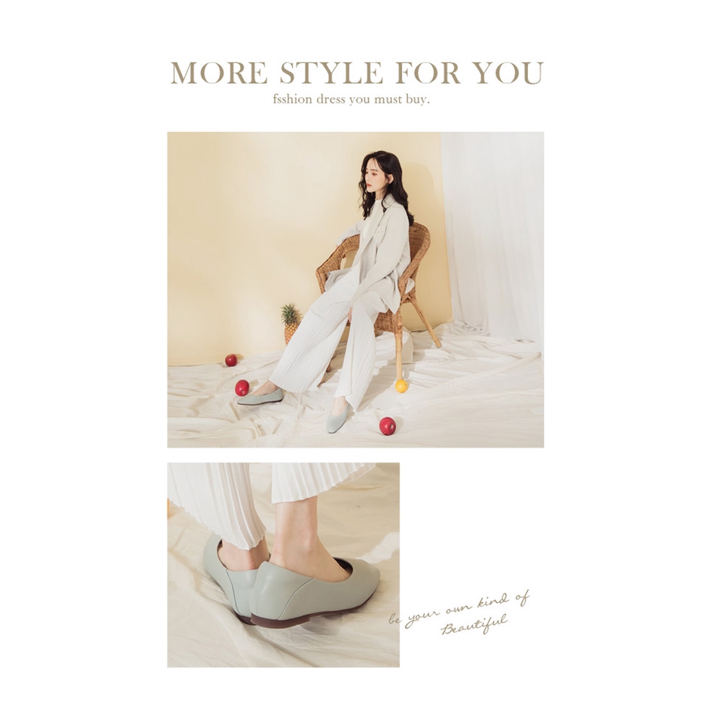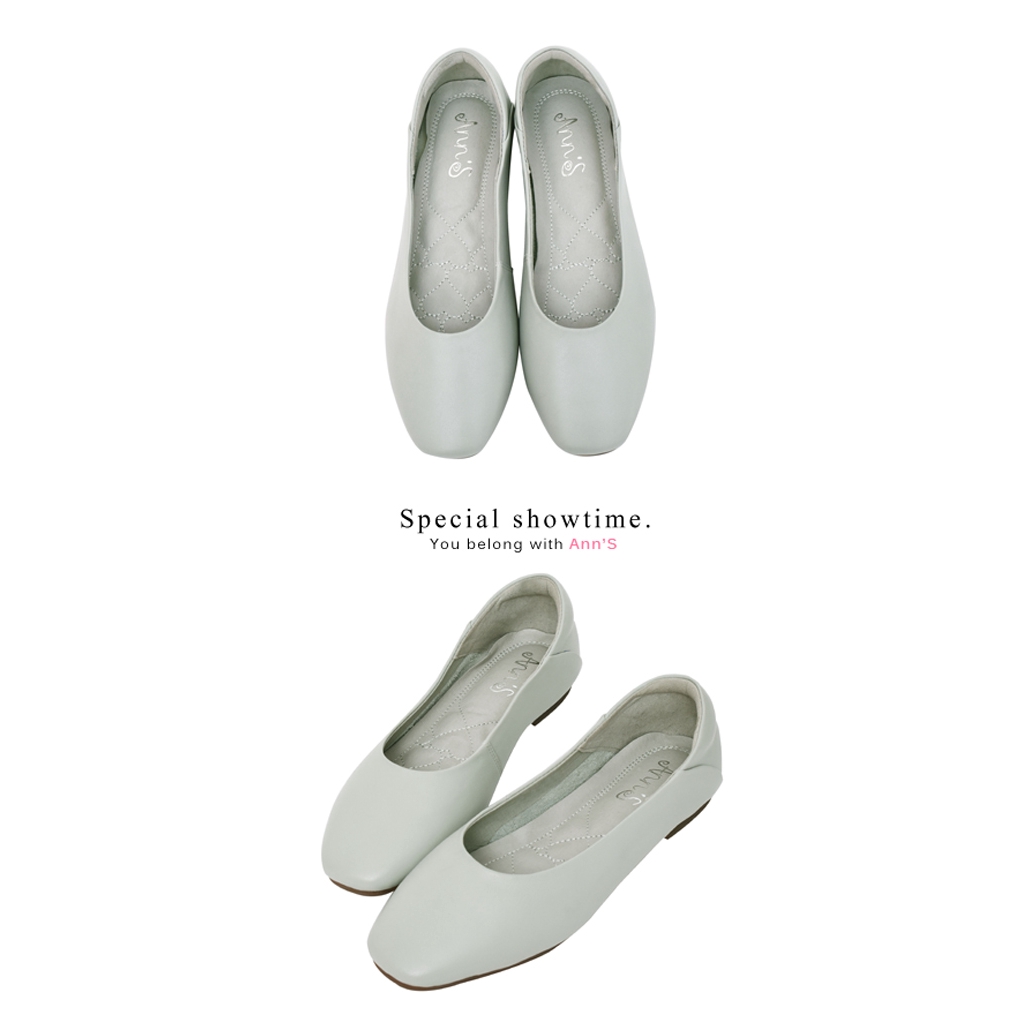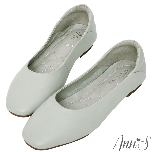 Ann’S全真皮牛皮時髦顯瘦方頭平底鞋-藍