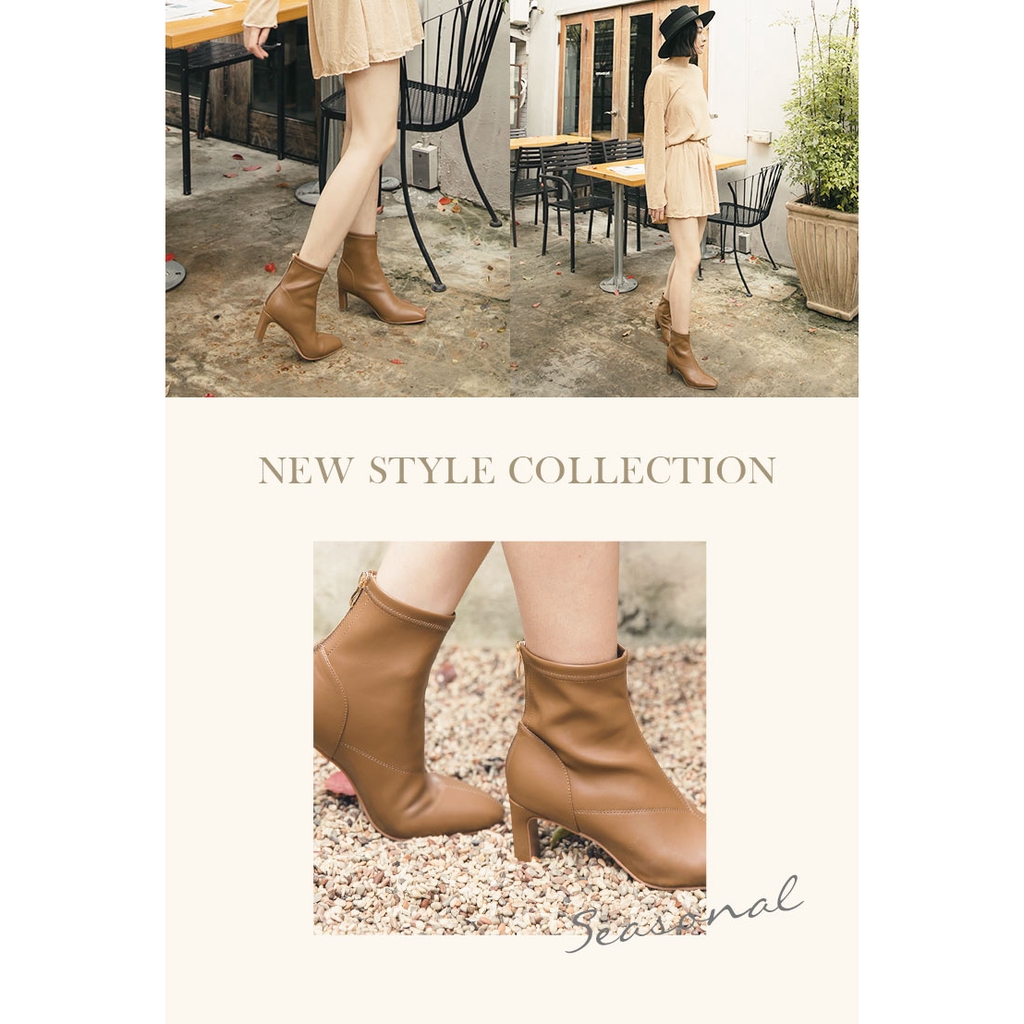 Ann’S充滿自信-美型貼腿剪裁方頭扁跟短靴6cm-咖