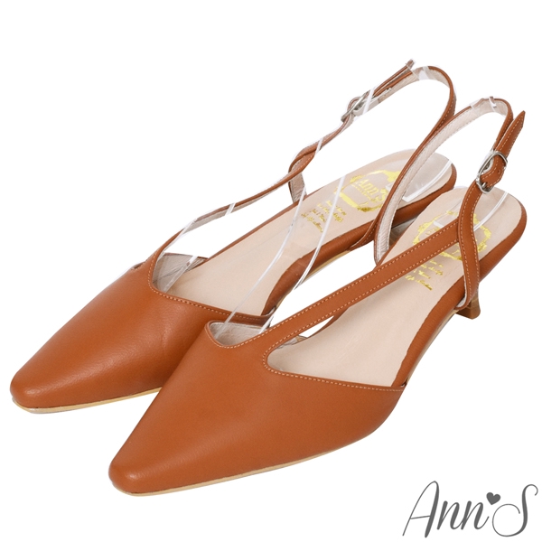 Ann’S性感女人味-小羊皮斜拉帶酒杯中跟尖頭跟鞋-棕
