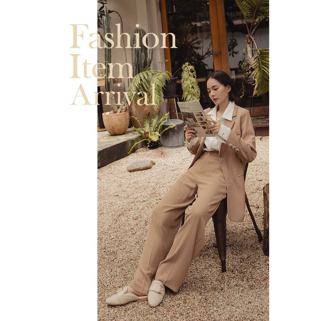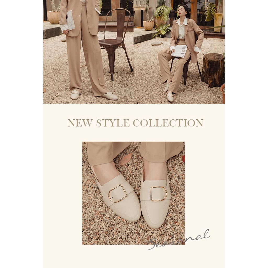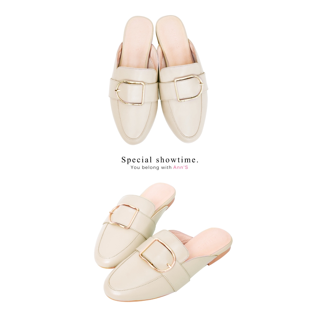 Ann’S質感真小羊皮D型扣帶穆勒鞋-米白(版型偏小)