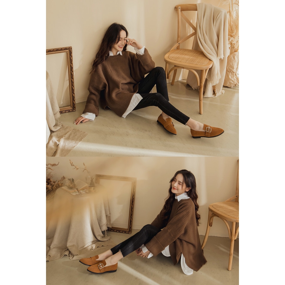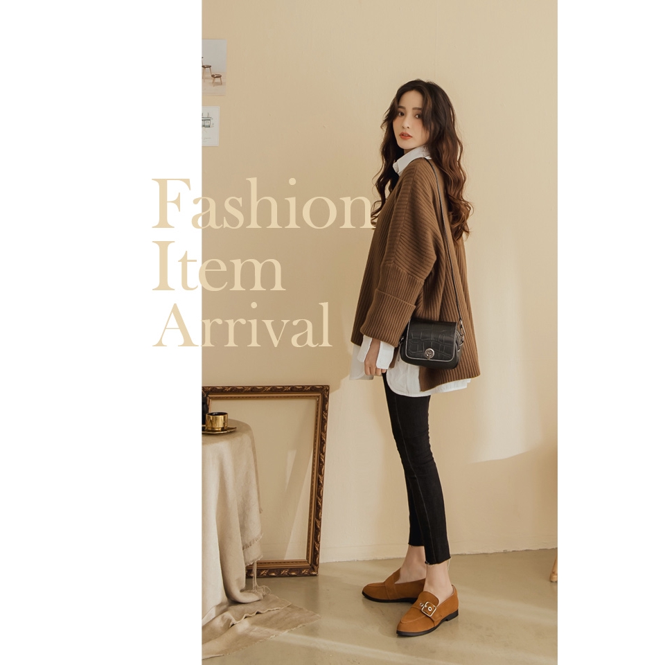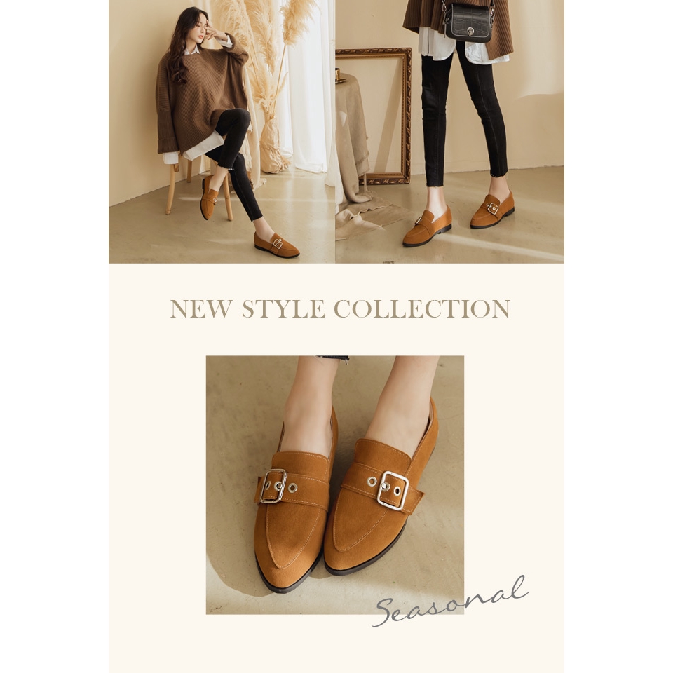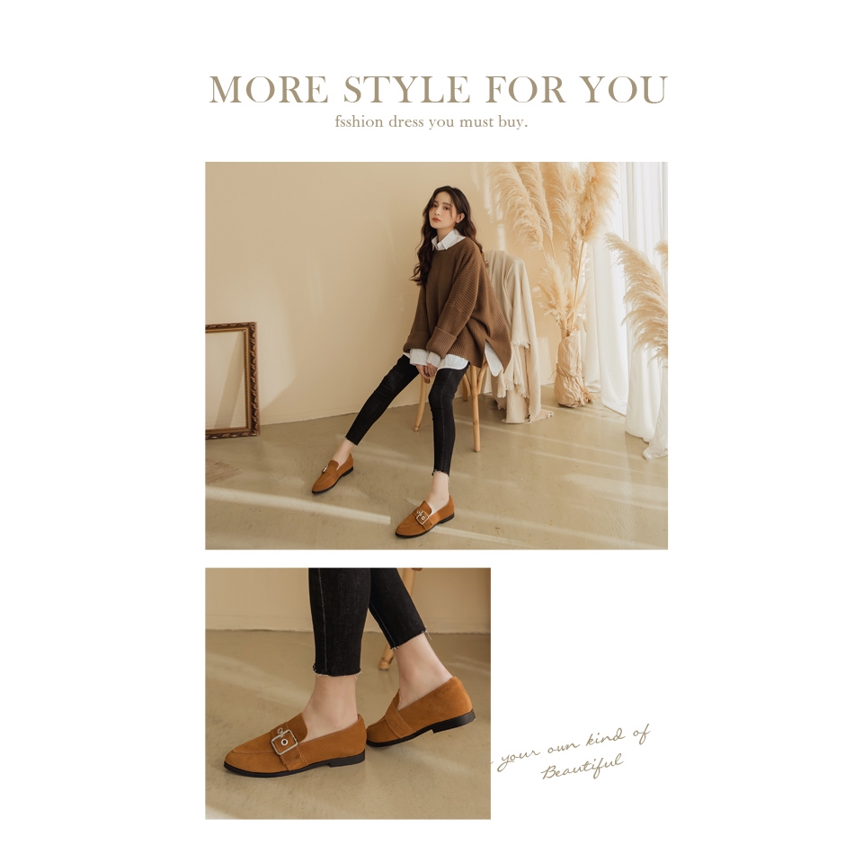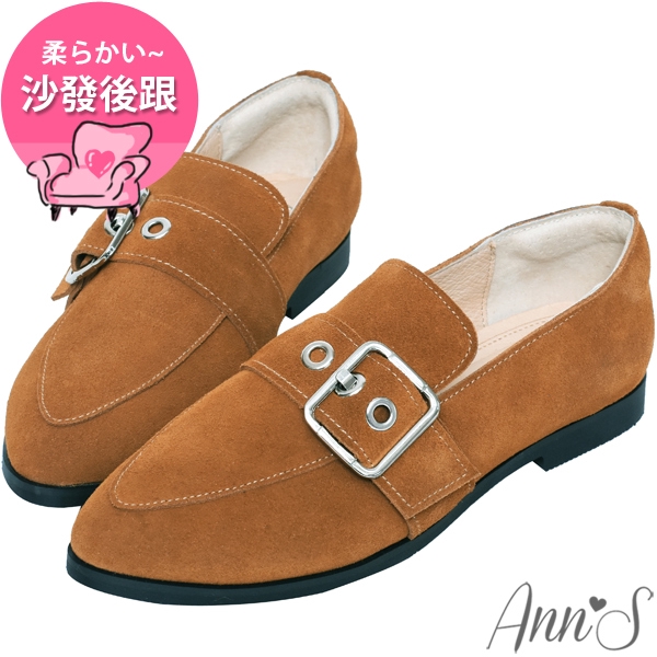 Ann’S有一點個性-防潑水牛麂皮銀色扣帶平底樂福鞋-棕