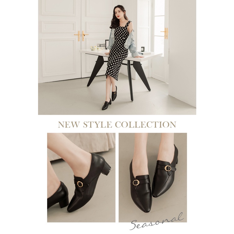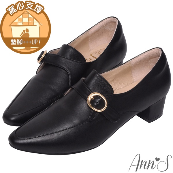 Ann’S手工製作頂級綿羊皮氣質金扣低跟踝靴4cm-黑