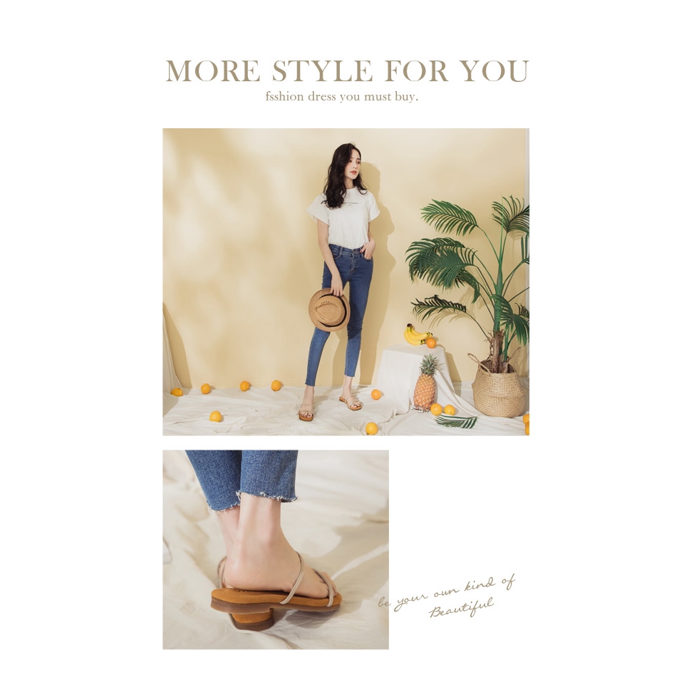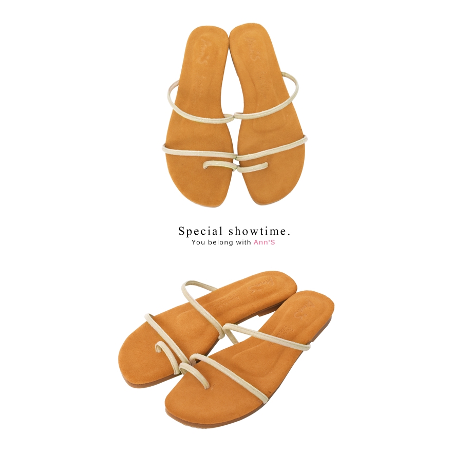 Ann’S水洗牛皮-套指軟軟小羊皮平底涼拖鞋-杏