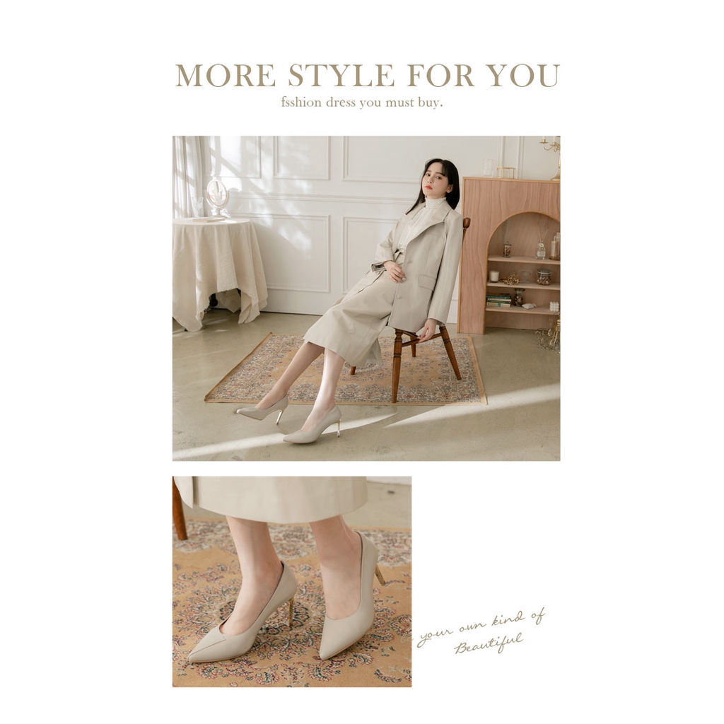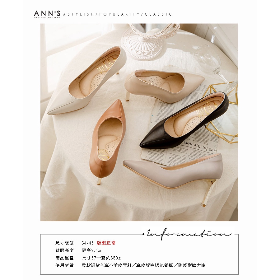 Ann’S嚮往的女人味-層次拼接柔軟小羊皮電鍍細跟尖頭高跟鞋7.5cm-米白