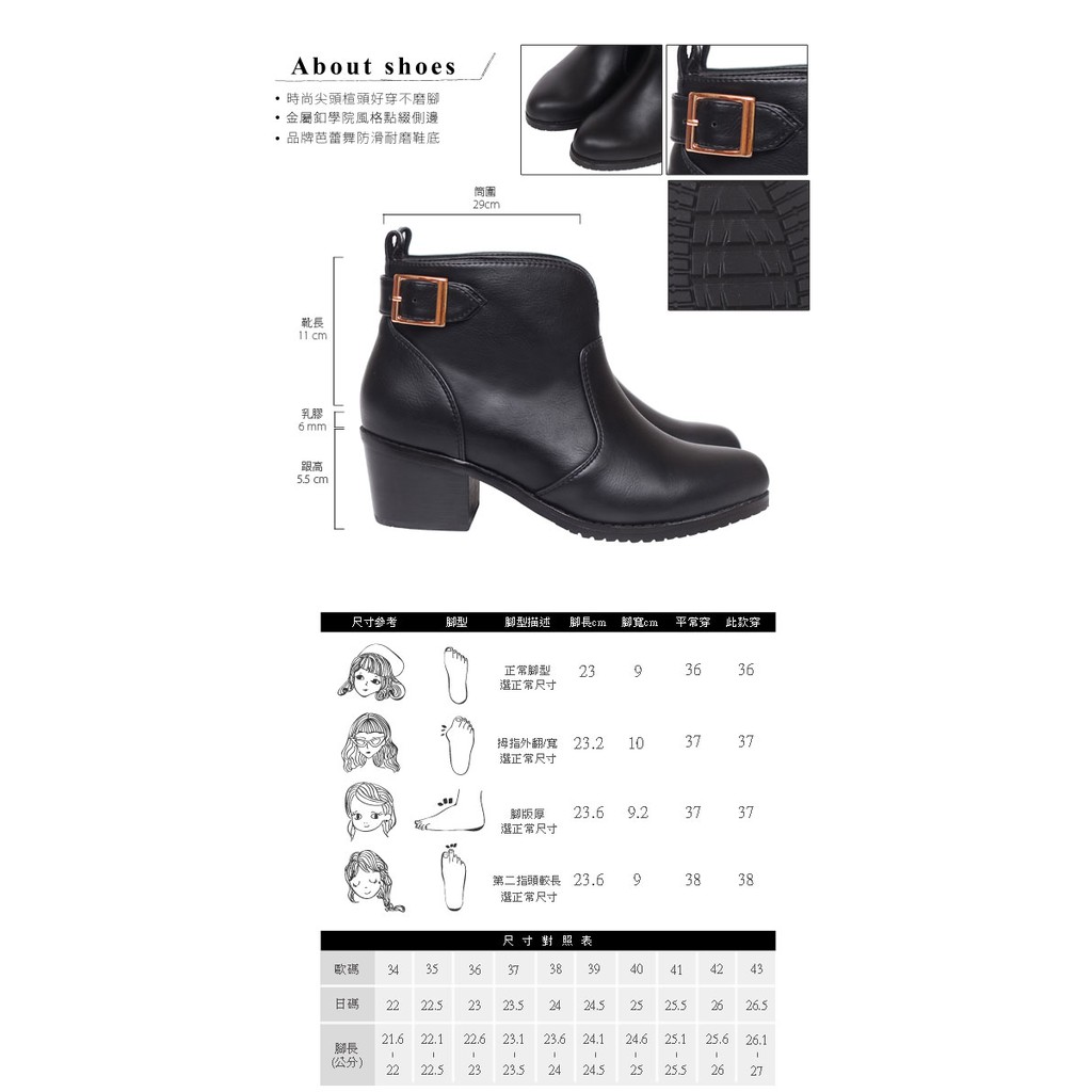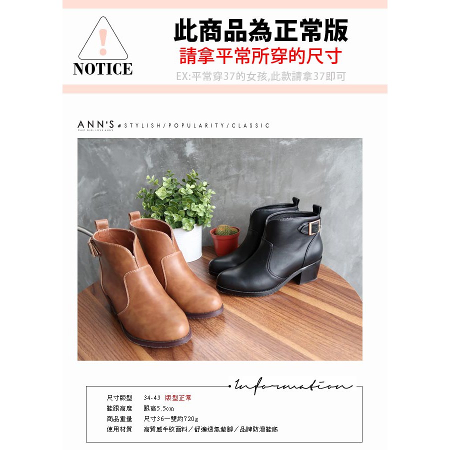 Ann’S美靴嚴選-前V口金屬後釦帶粗跟短靴-黑