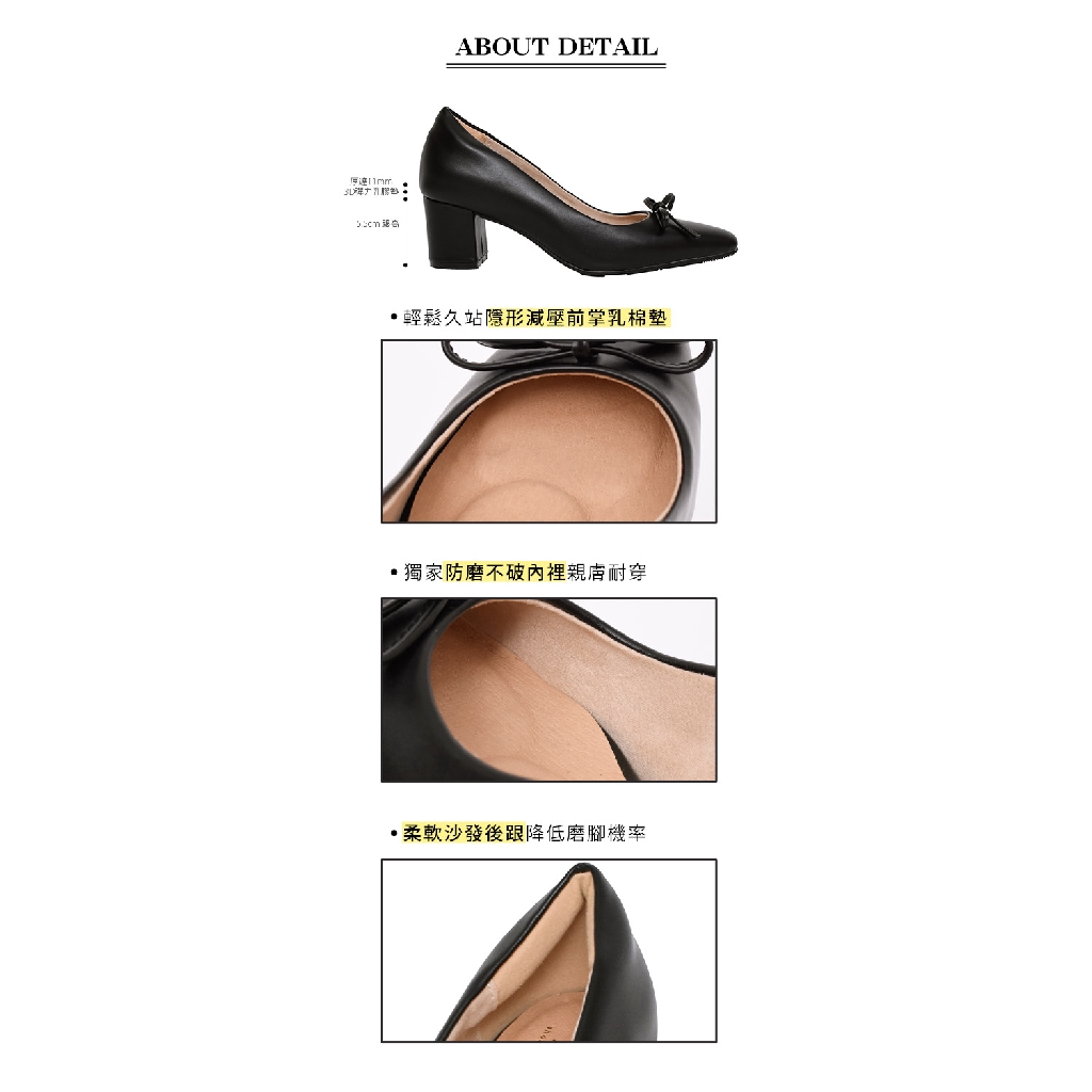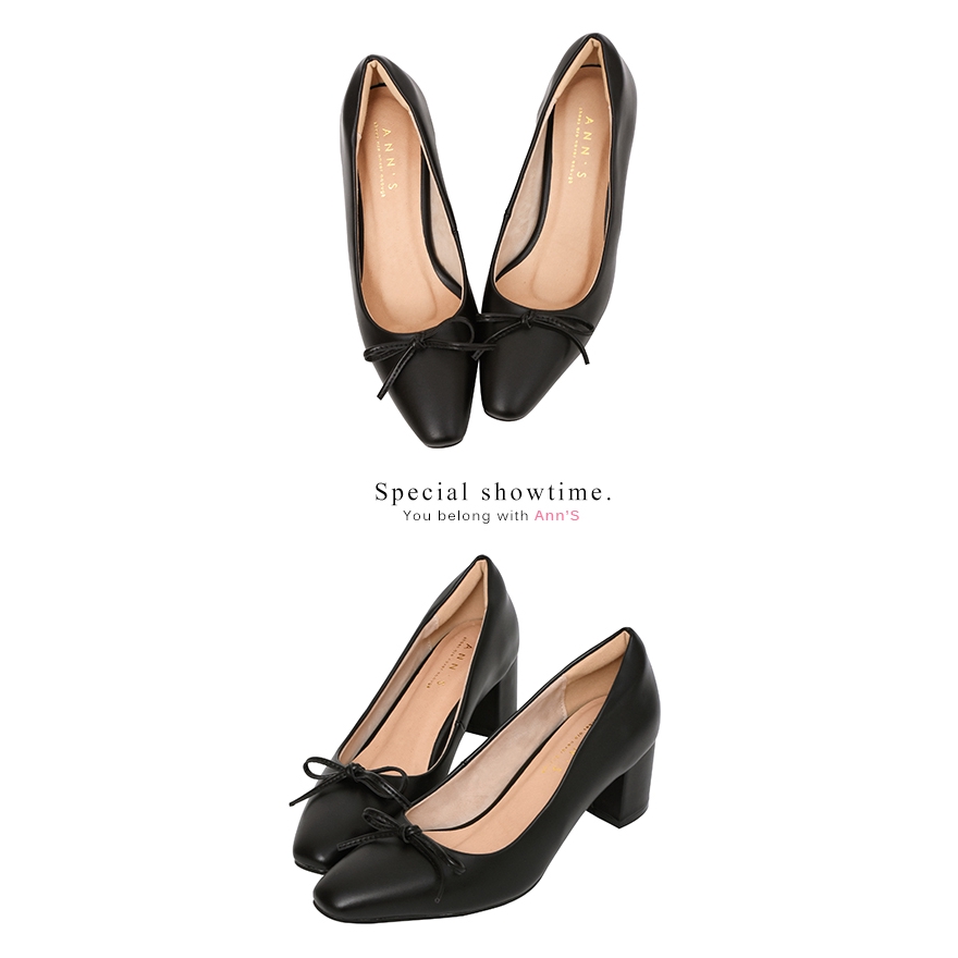 Ann’S法式優雅-油皮細緻蝴蝶結粗跟方頭跟鞋5.5cm-黑