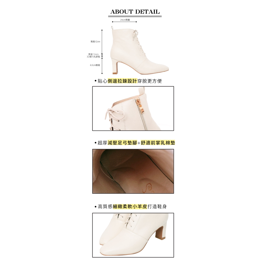 Ann’S頂級小羊皮窄瘦修身造型綁帶方頭扁跟短靴6.5cm-米白