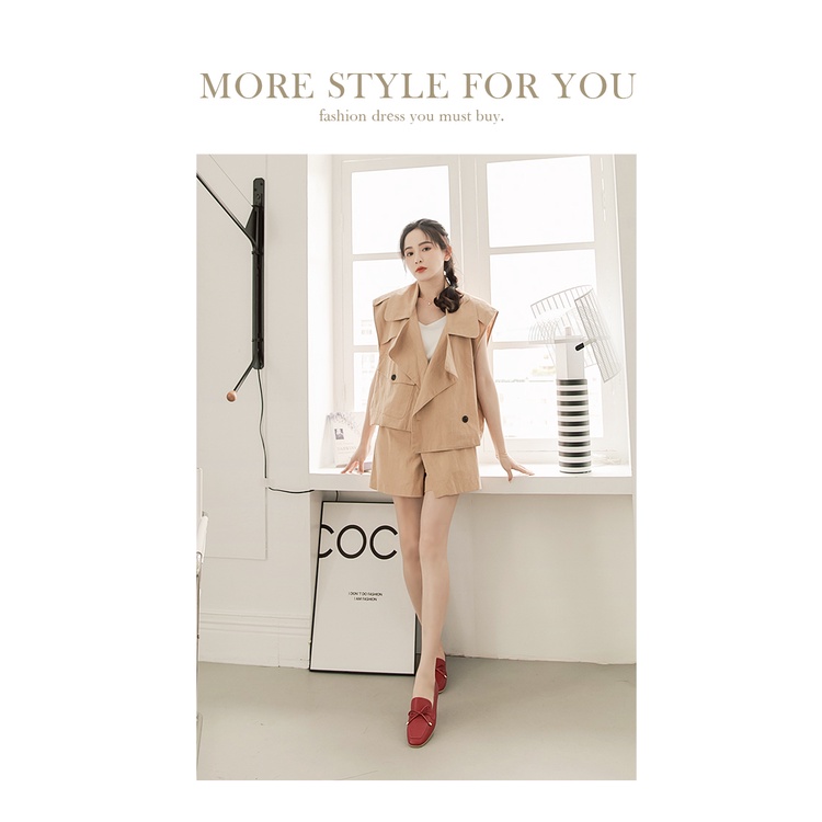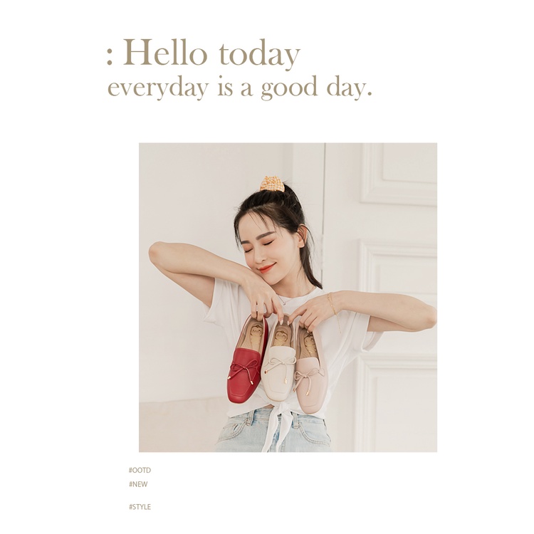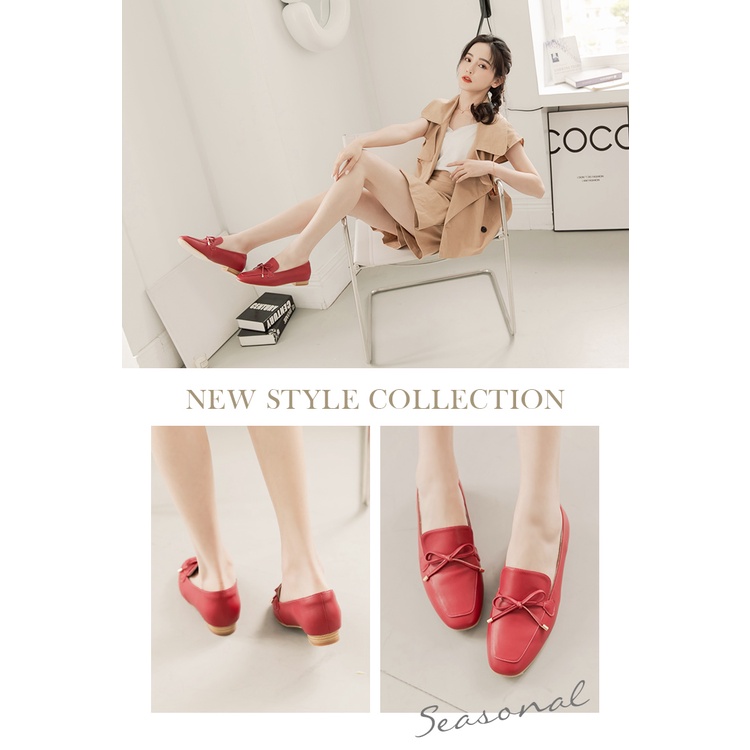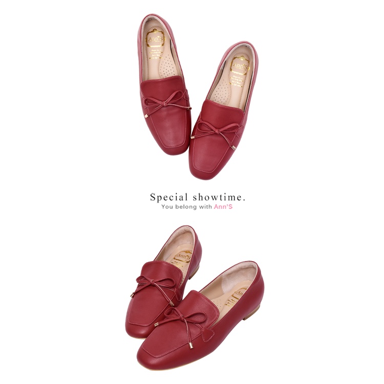 Ann’S散發小清新-蝴蝶結柔軟羊皮金釦平底樂福鞋-紅