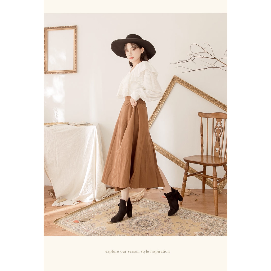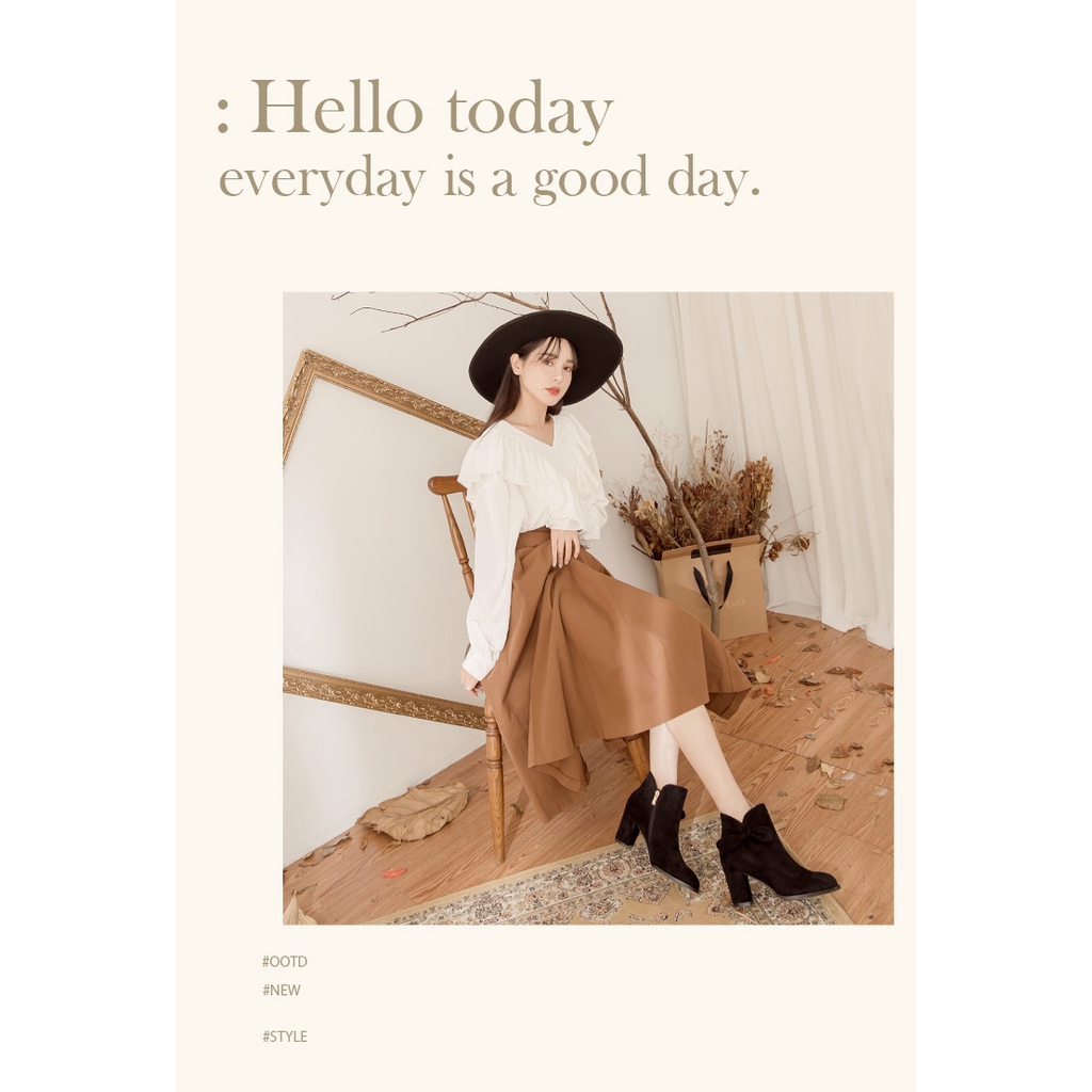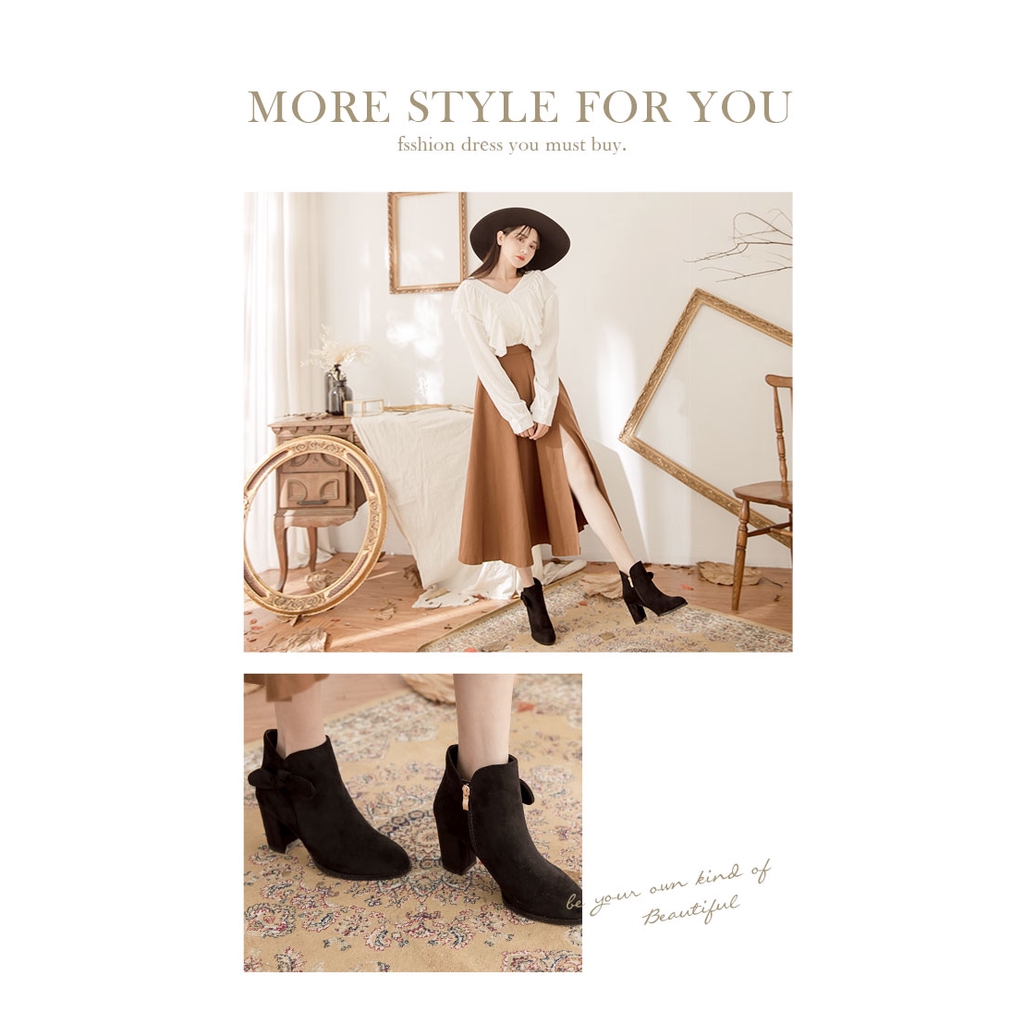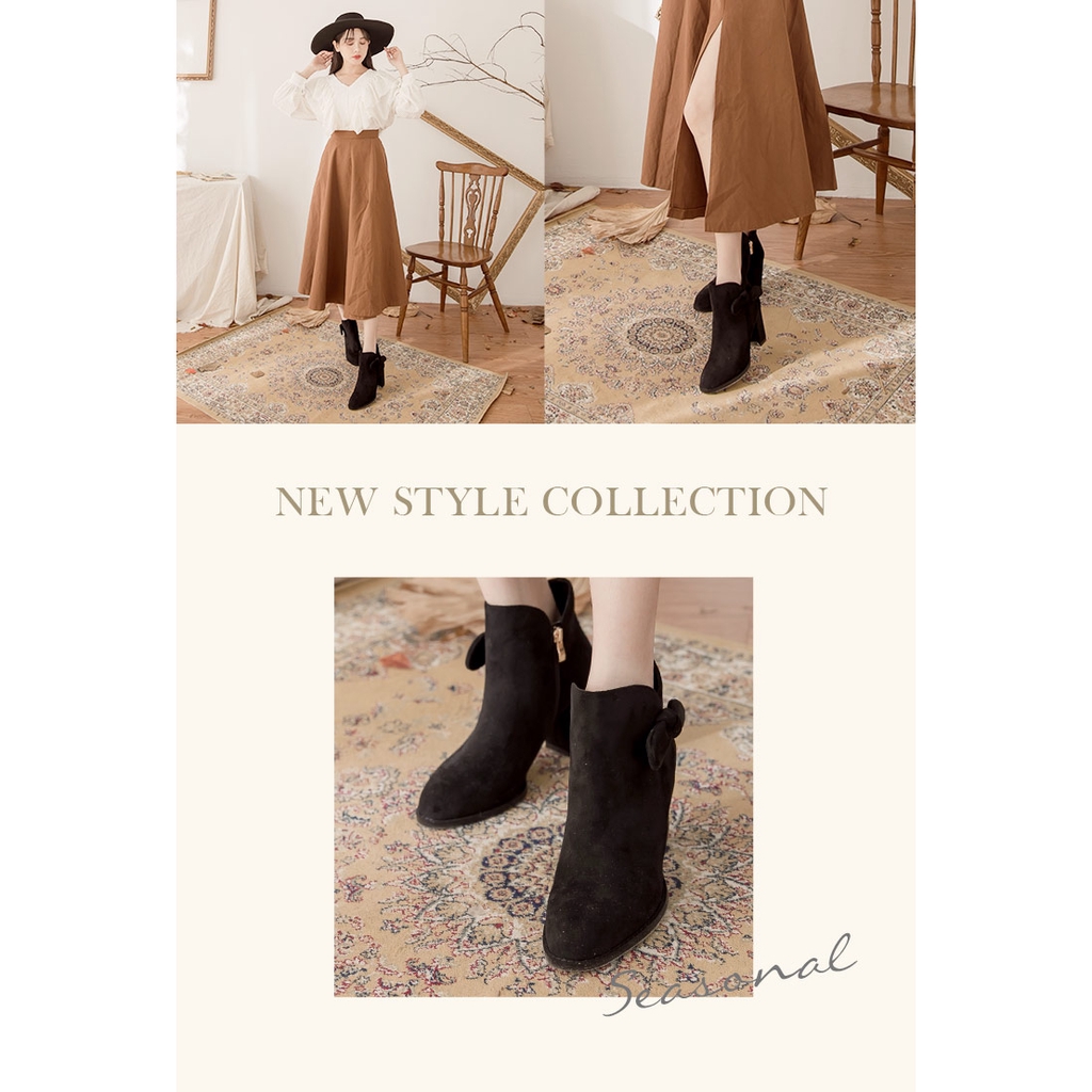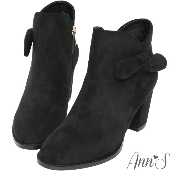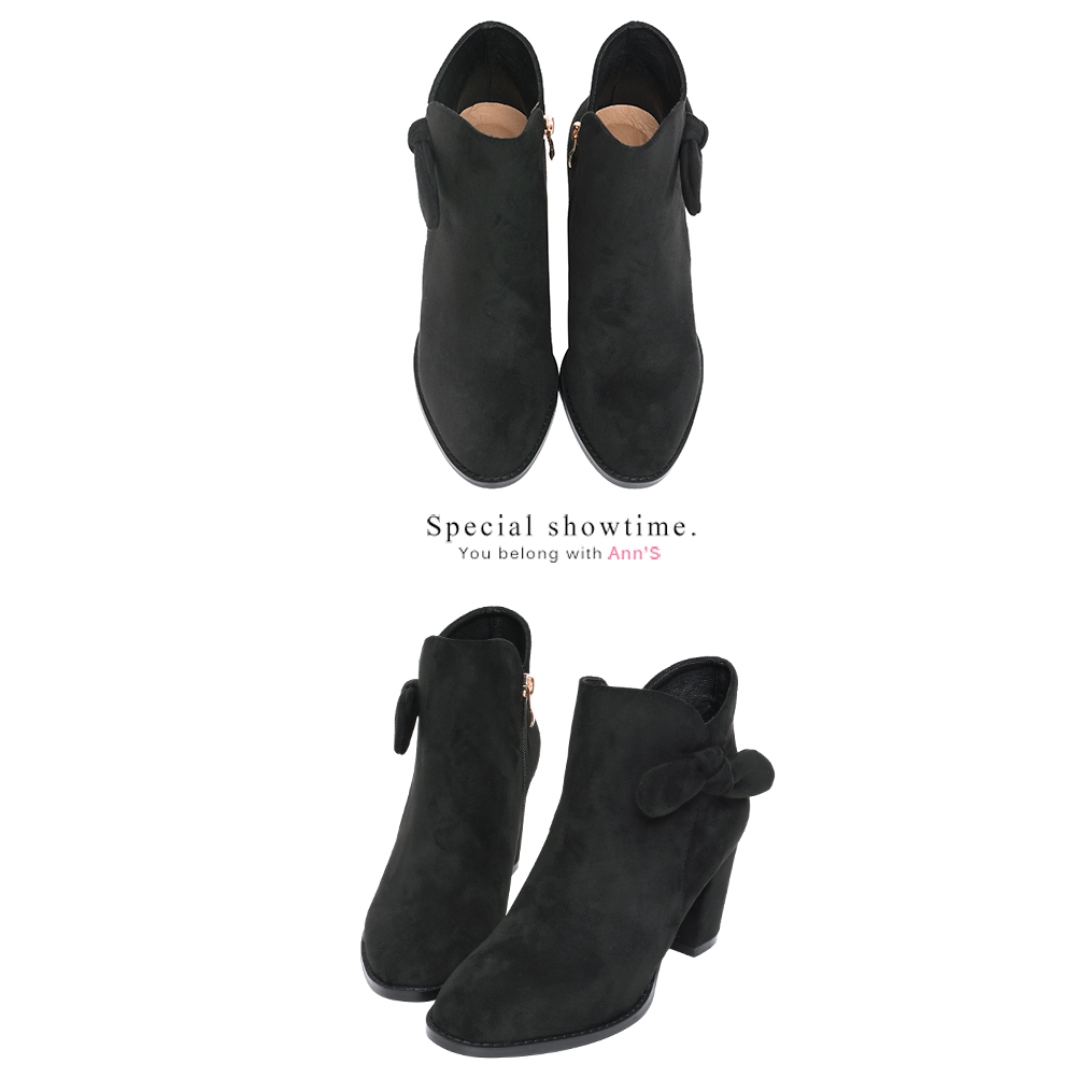 Ann’S可愛蝴蝶結-絨布側邊V口顯瘦粗跟短靴7.5cm-黑(版型偏小)