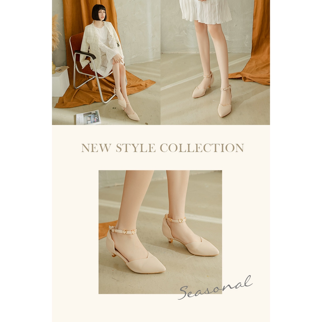 Ann’S愛心光波-甜美愛心鑽性感繫帶低跟尖頭鞋3cm-杏
