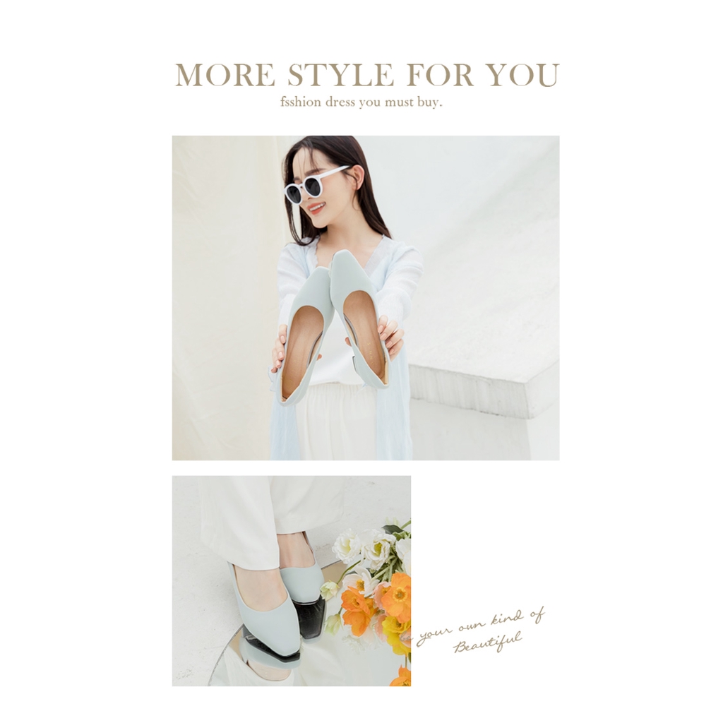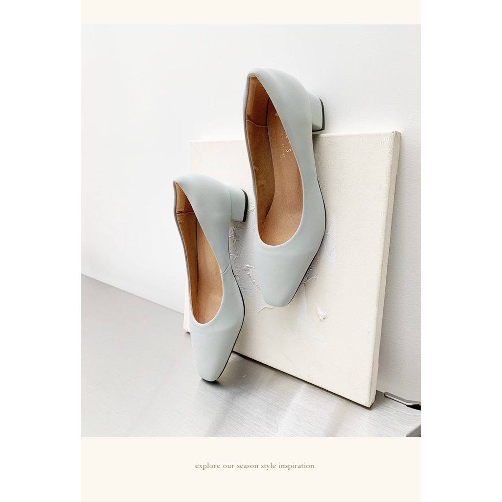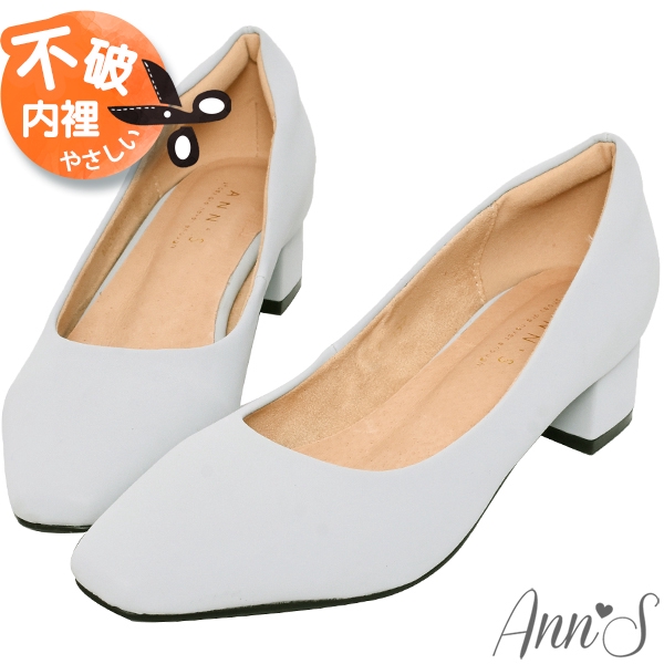 Ann’S真的很舒服-霧面皮革粗跟小方頭鞋3.5cm-淺藍