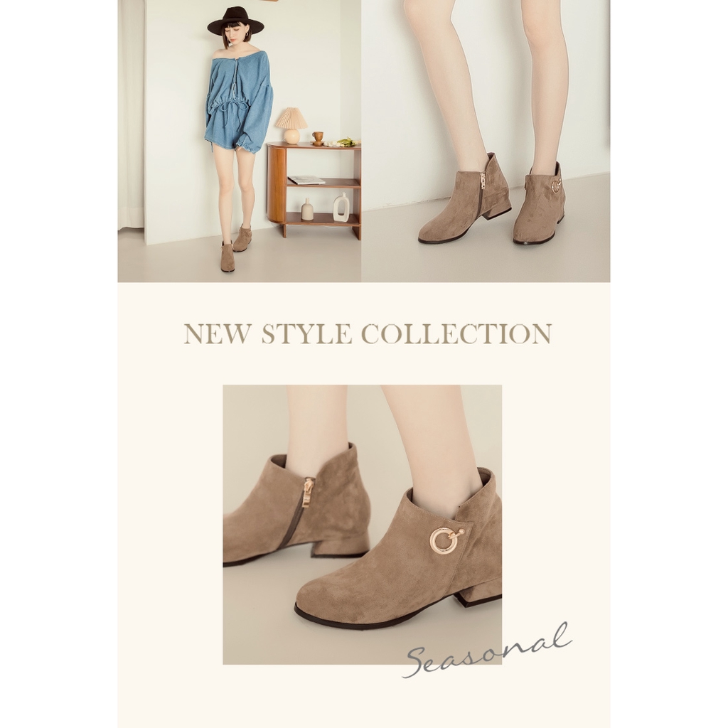 Ann’S輕鬆不費力-絨布顯瘦V口金環平底短靴3cm-咖(版型偏小)
